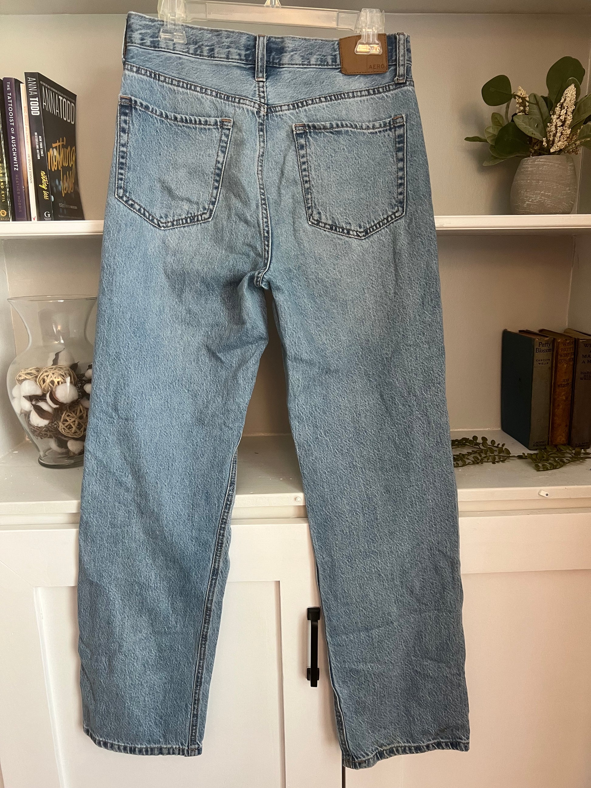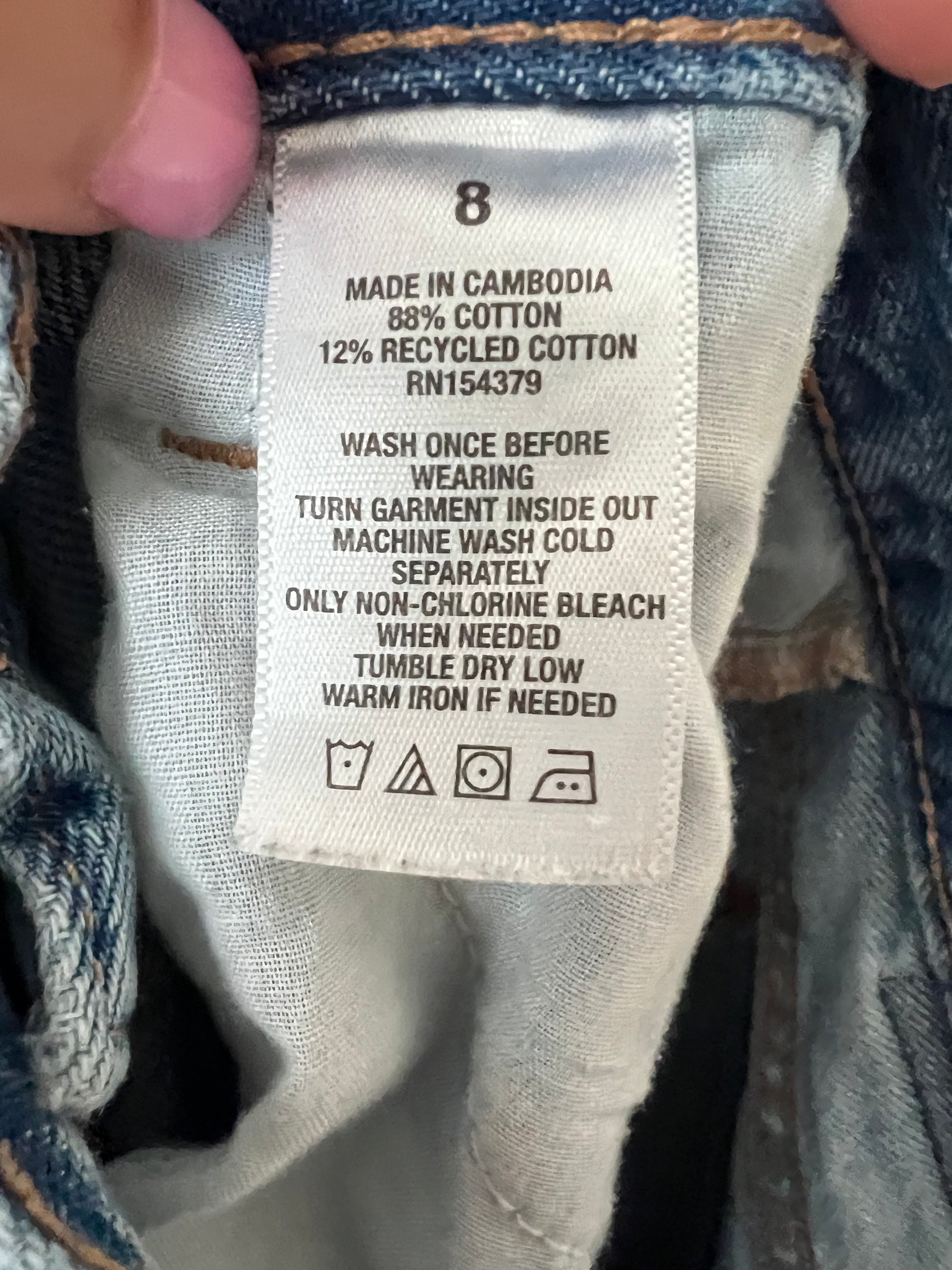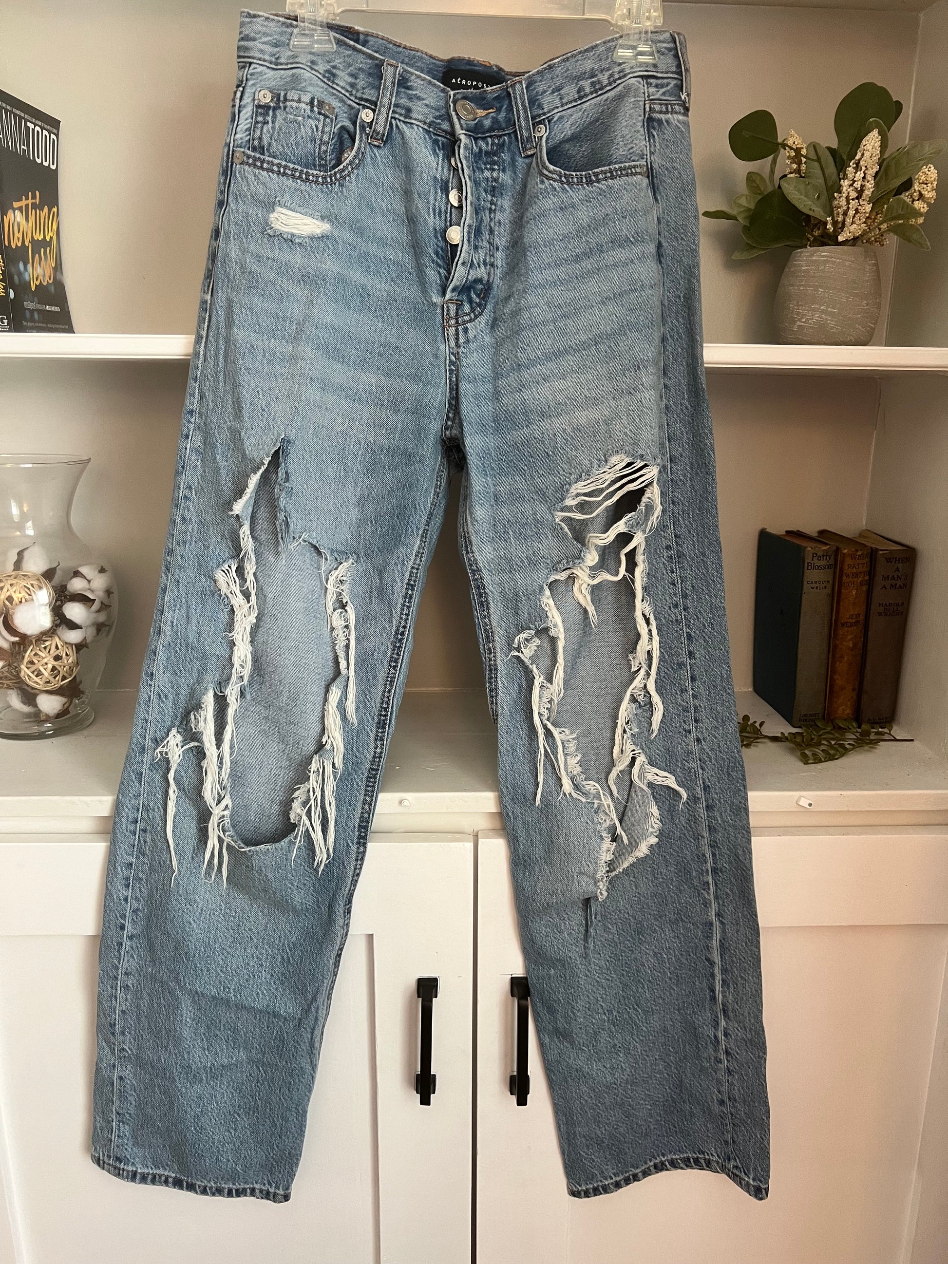 Button fly and distressing on the front. These are so cute for the Spring and Fall with a short/long sleeve tee shirt or a sweater. No flaws!
