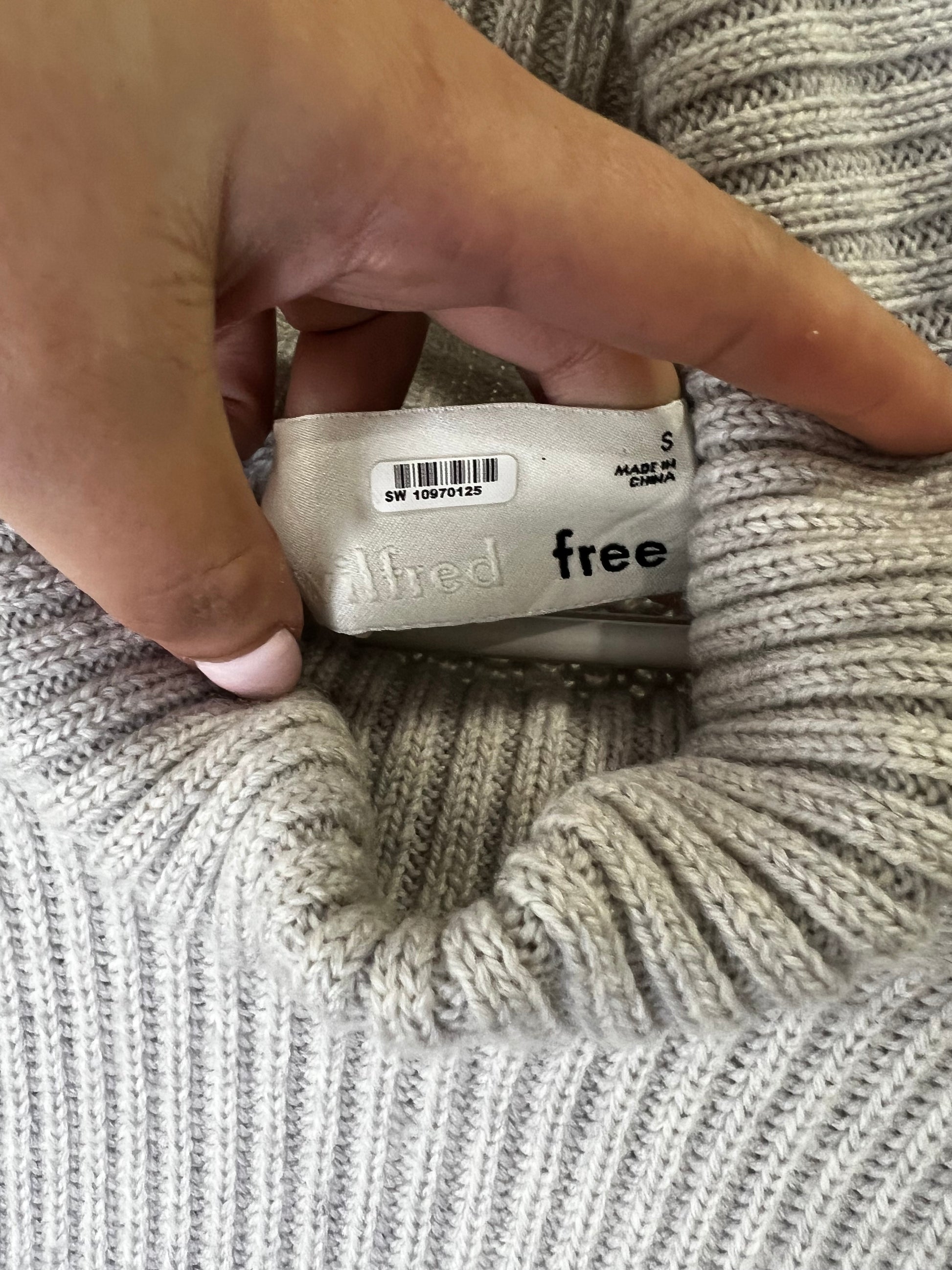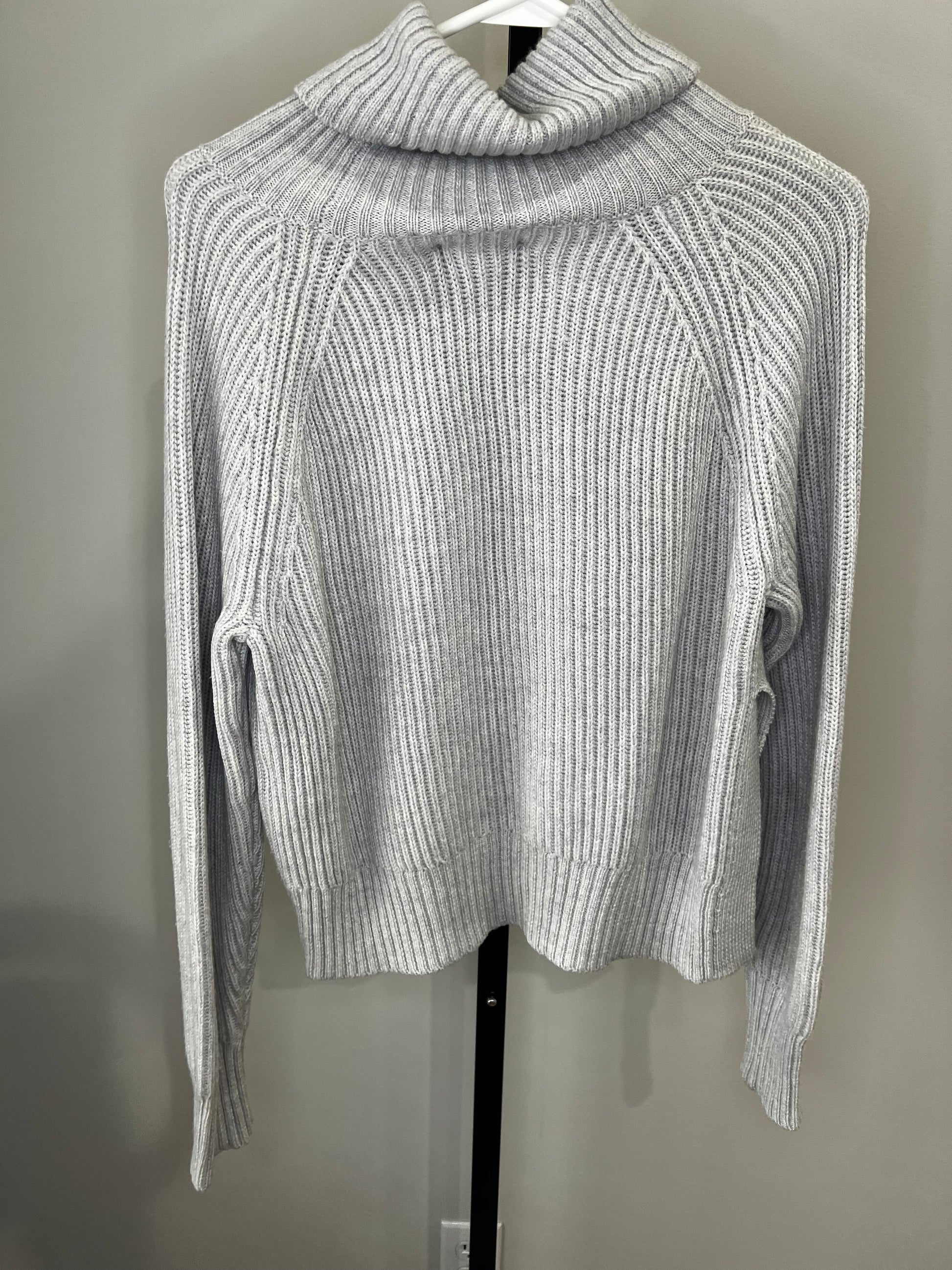 This is nice, high quality material. Slit on the side and turtleneck styled top. This is new without tags. No flaws!