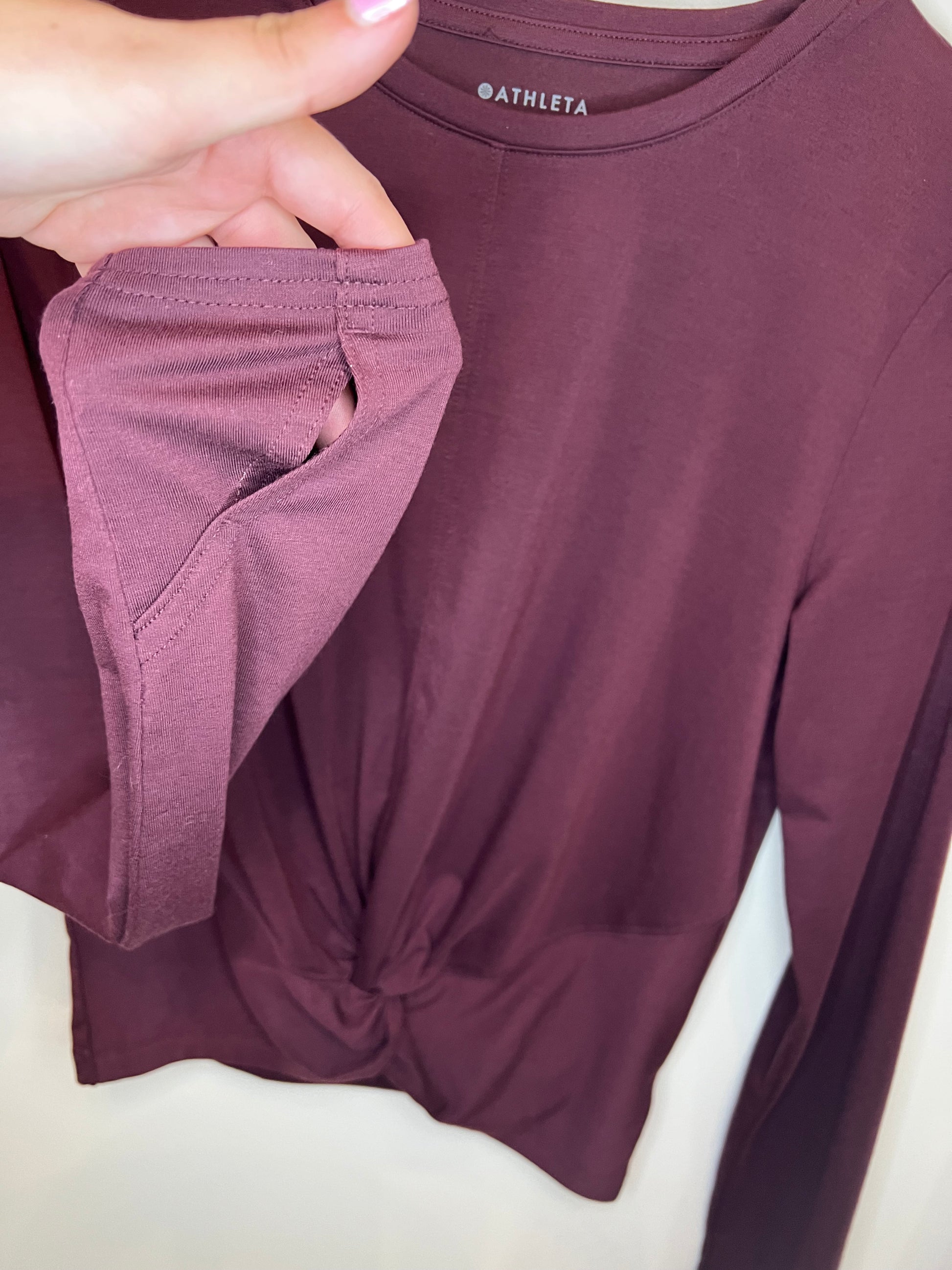 Athleta Maroon Knot Front Long Sleeve