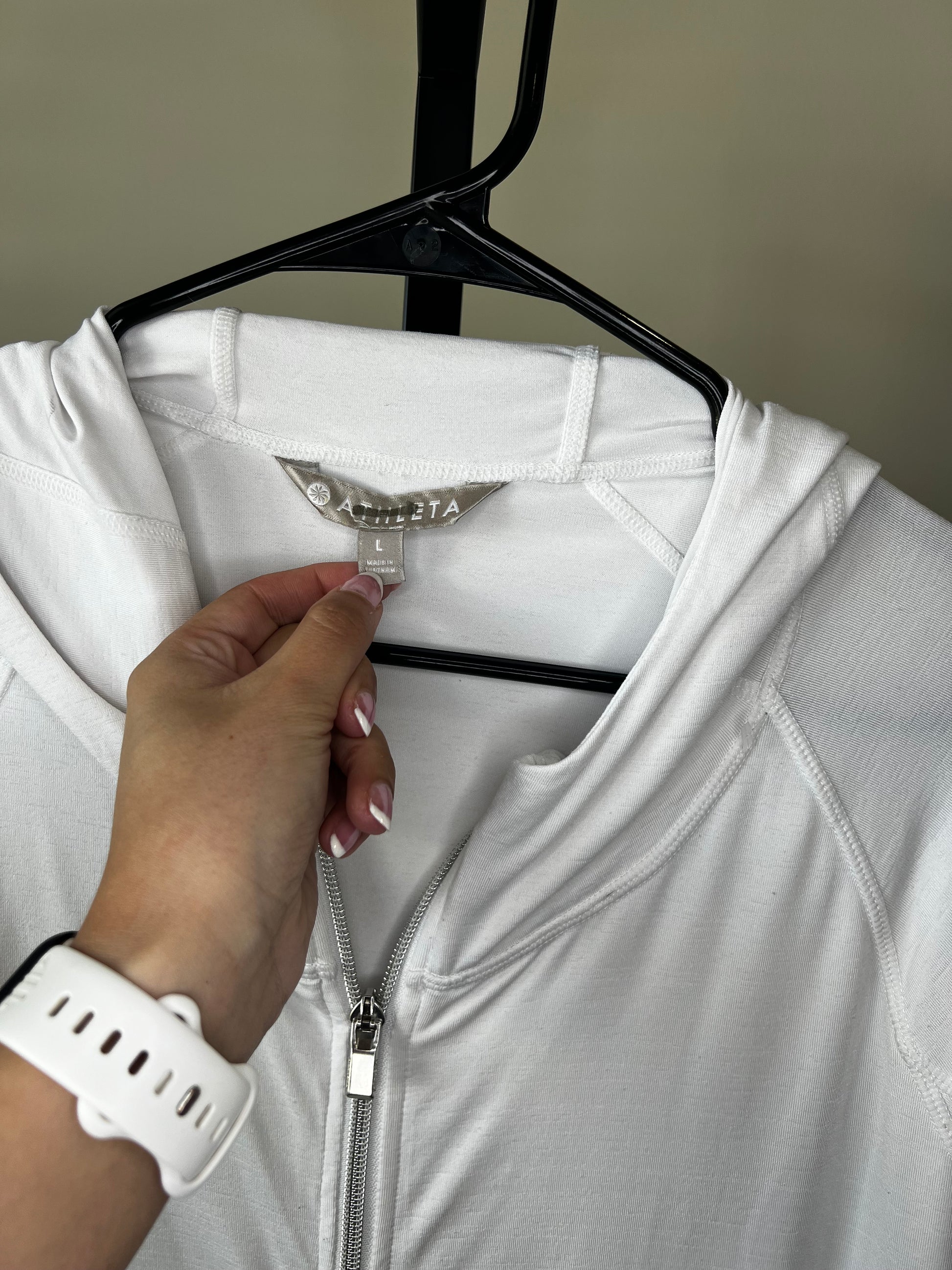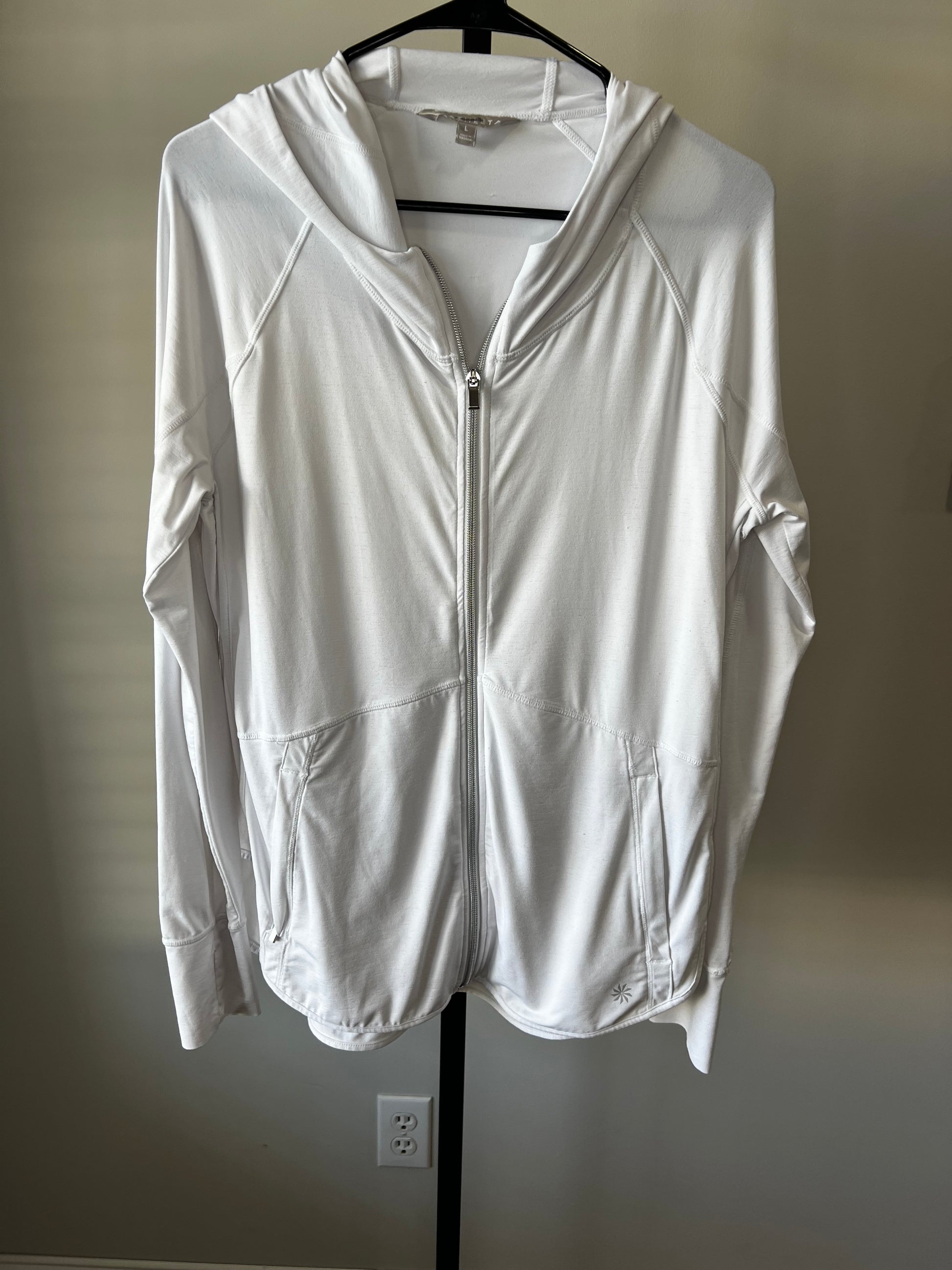 Athleta White Full Zip Hooded Jacket- Sz L