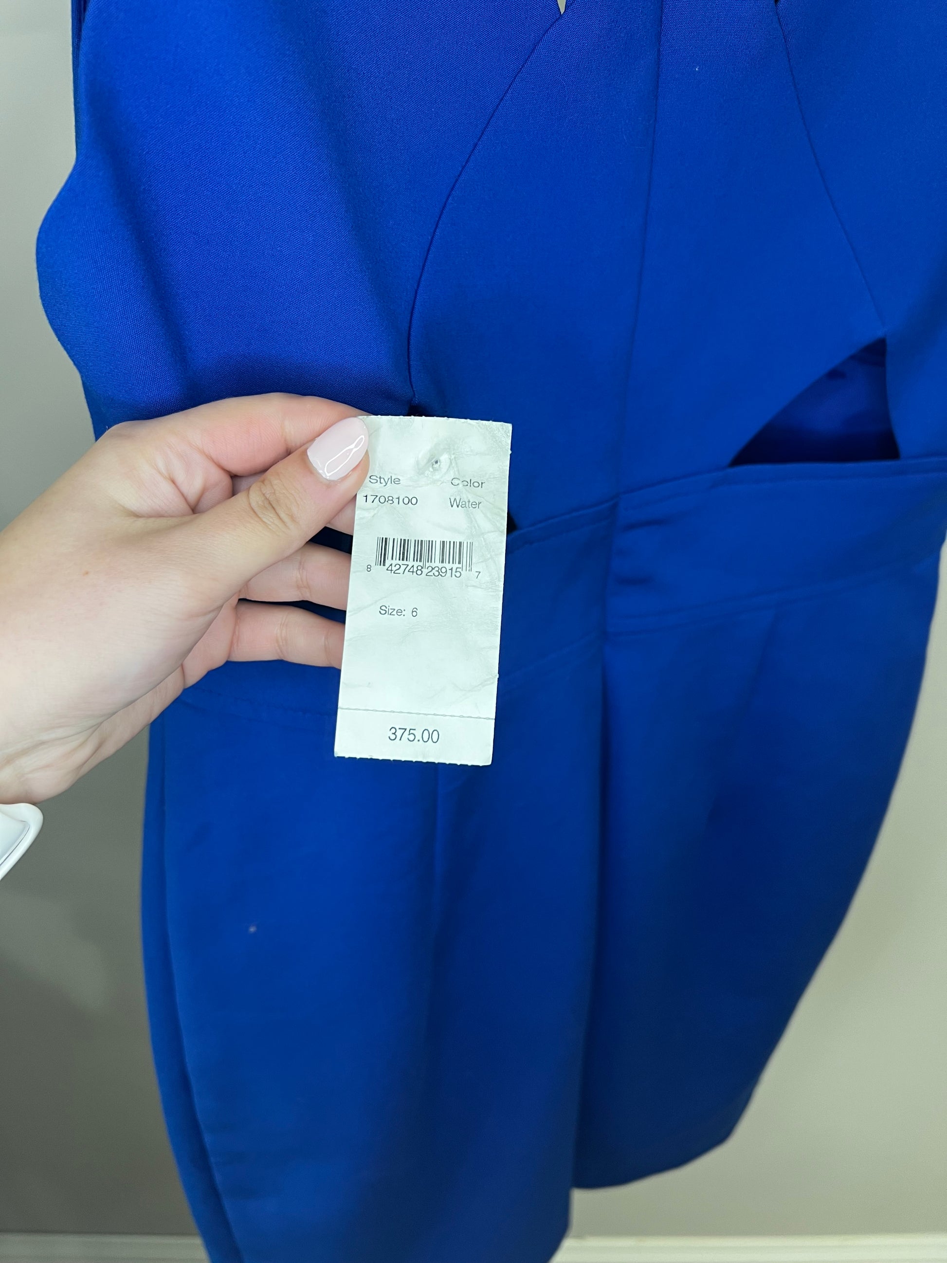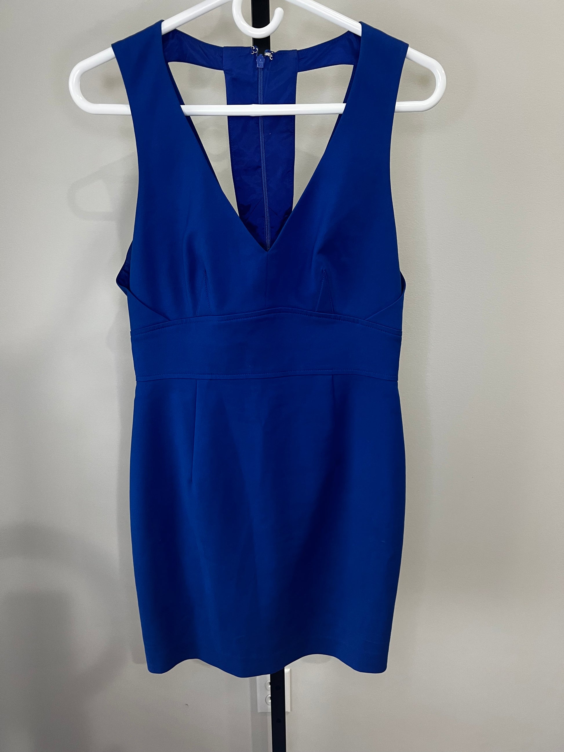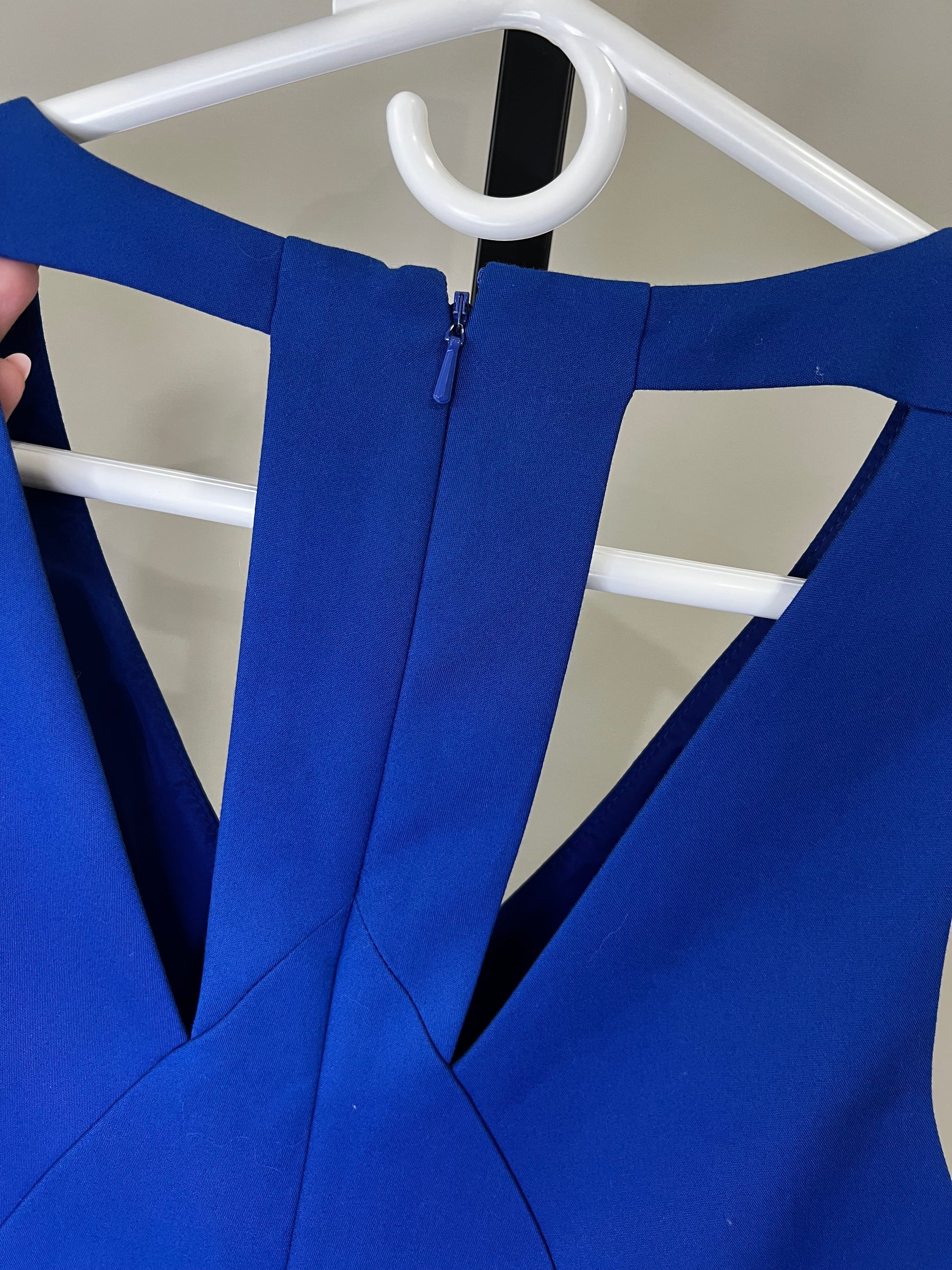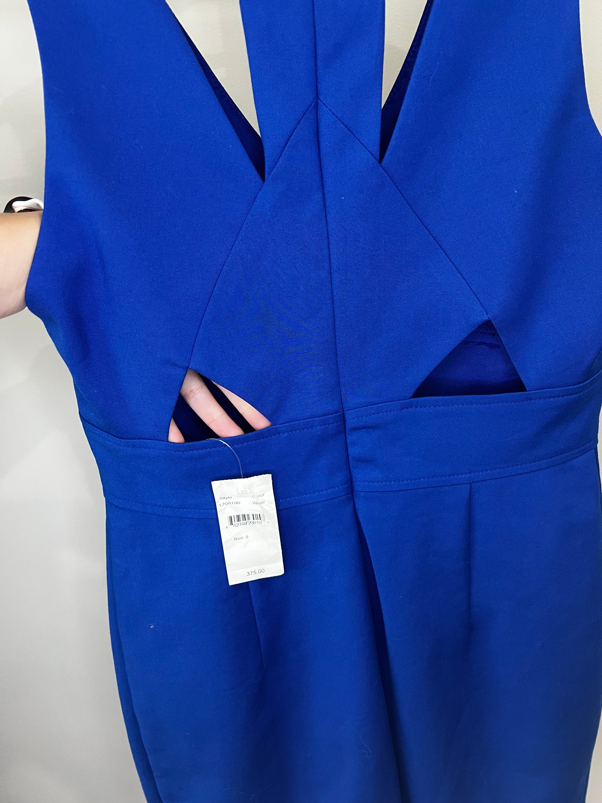 New with tags! Deep V Neck with gorgeous cage back details. Royal Blue in color. Body shape of this dress is gorgeous on any body type. No flaws!
