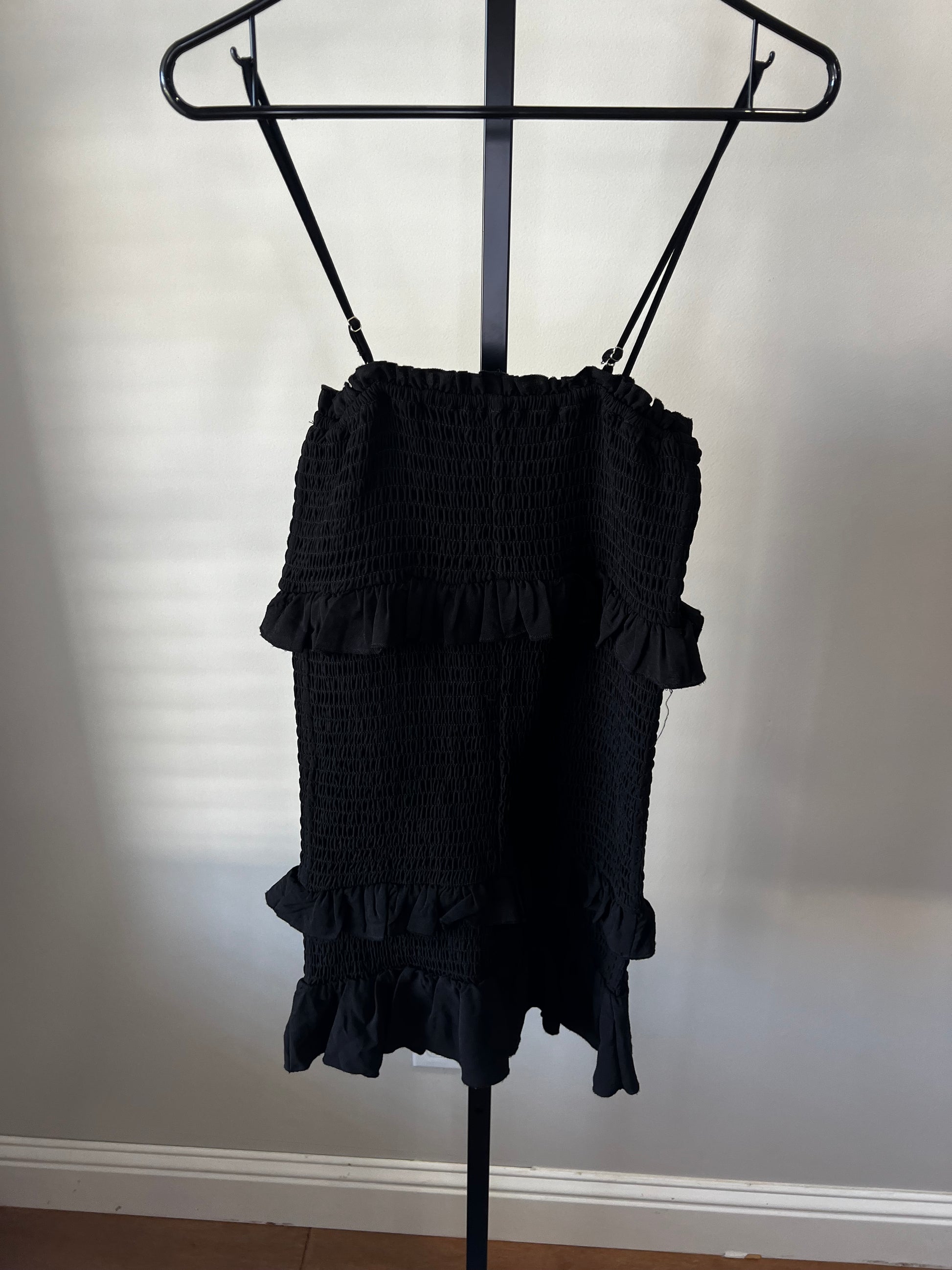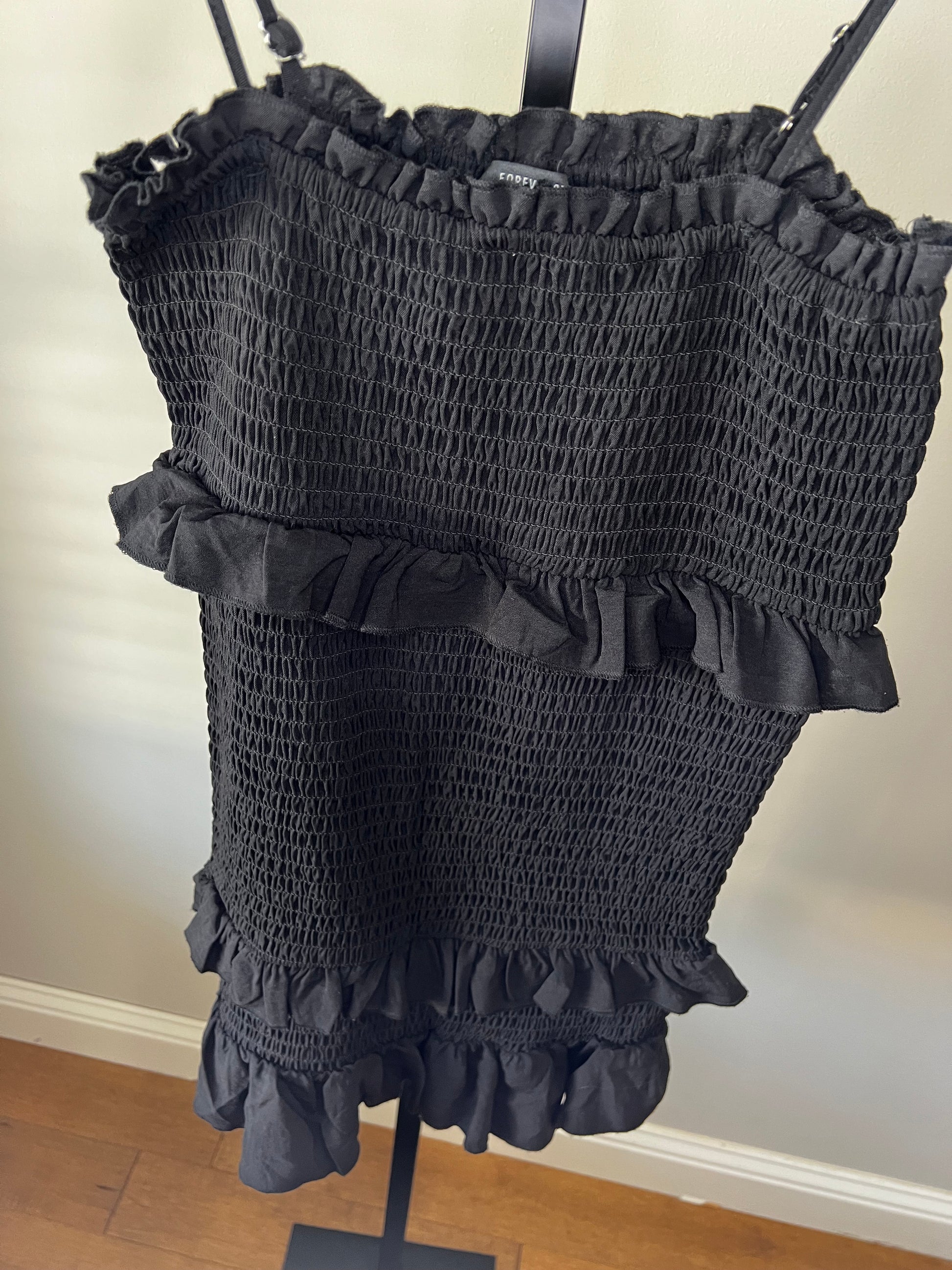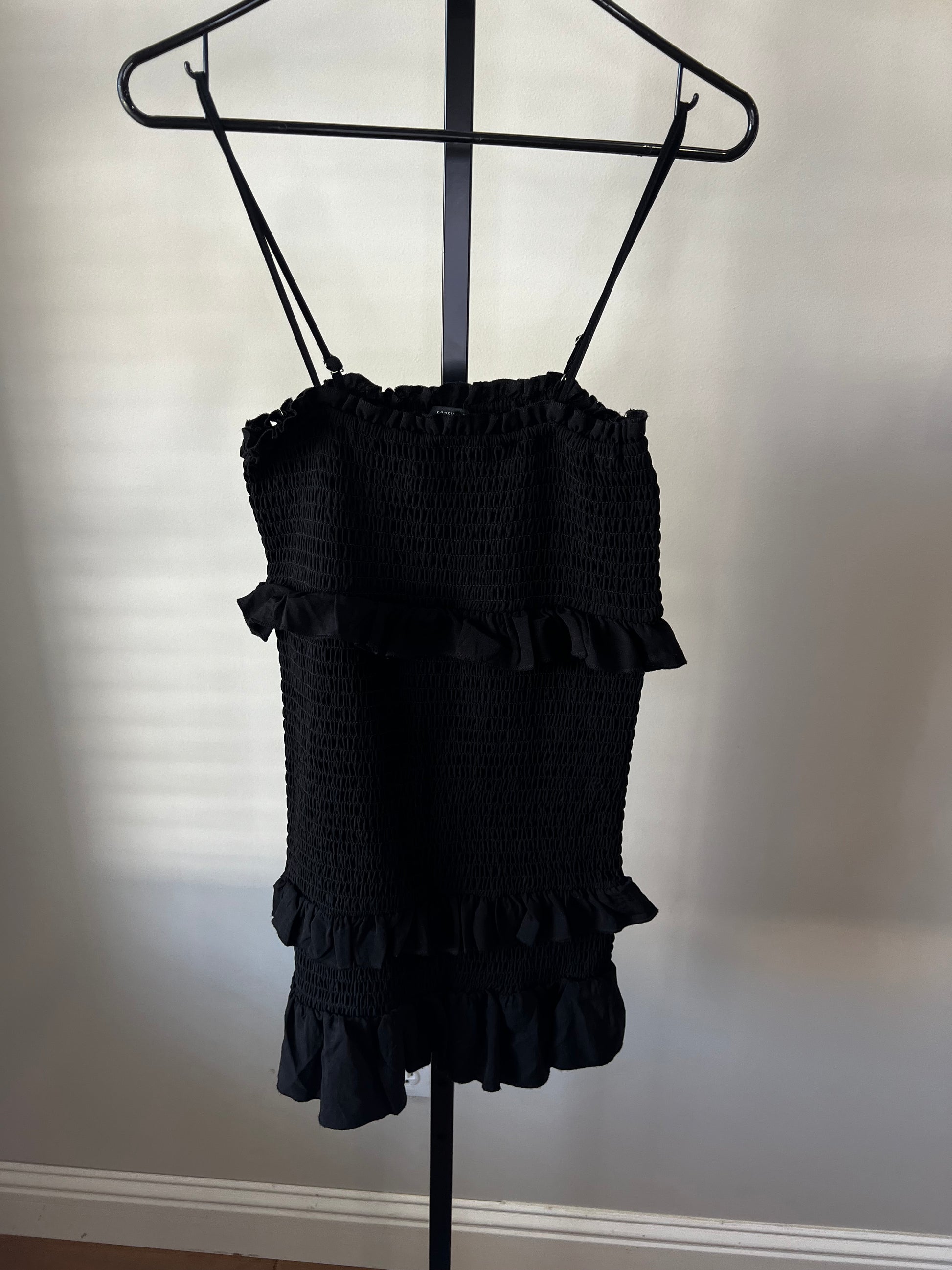This is very stretchy throughout the entire dress, with adjustable straps. So cute for a wedding guest, date night, or girls day at a winery. No flaws!