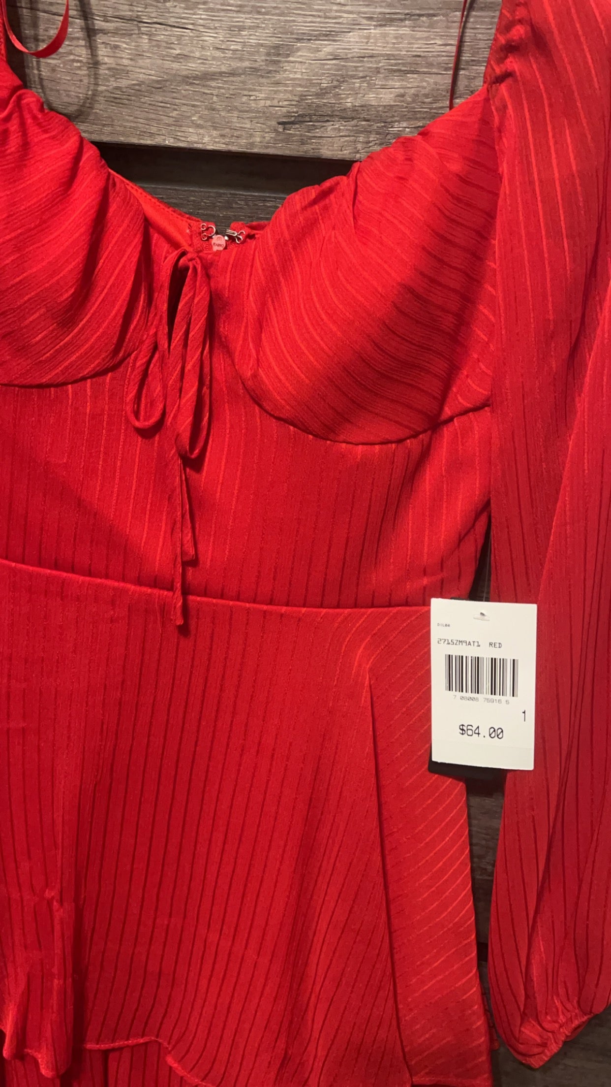 New with tags! Adorable red dress with sheer long sleeves. No flaws!