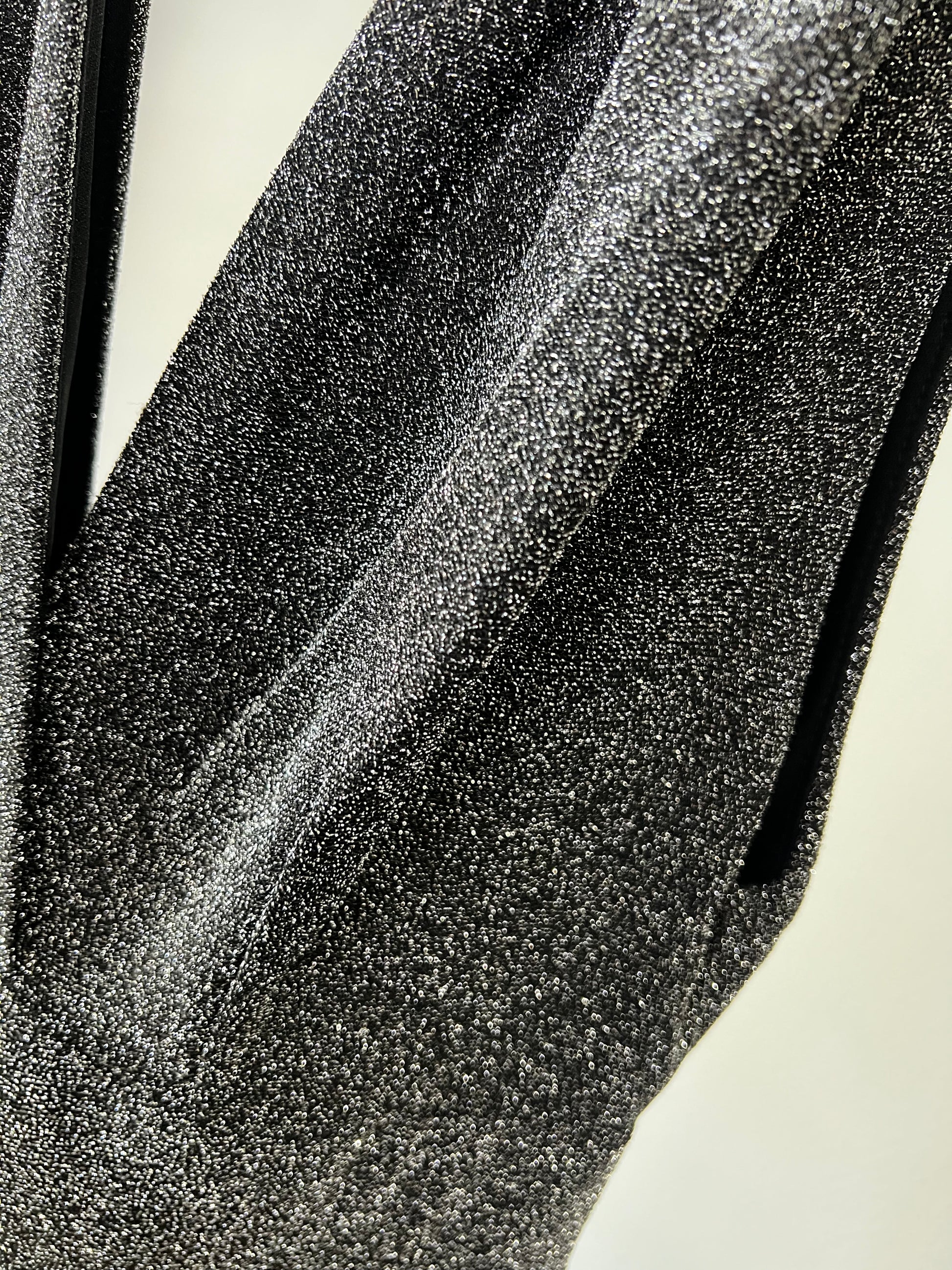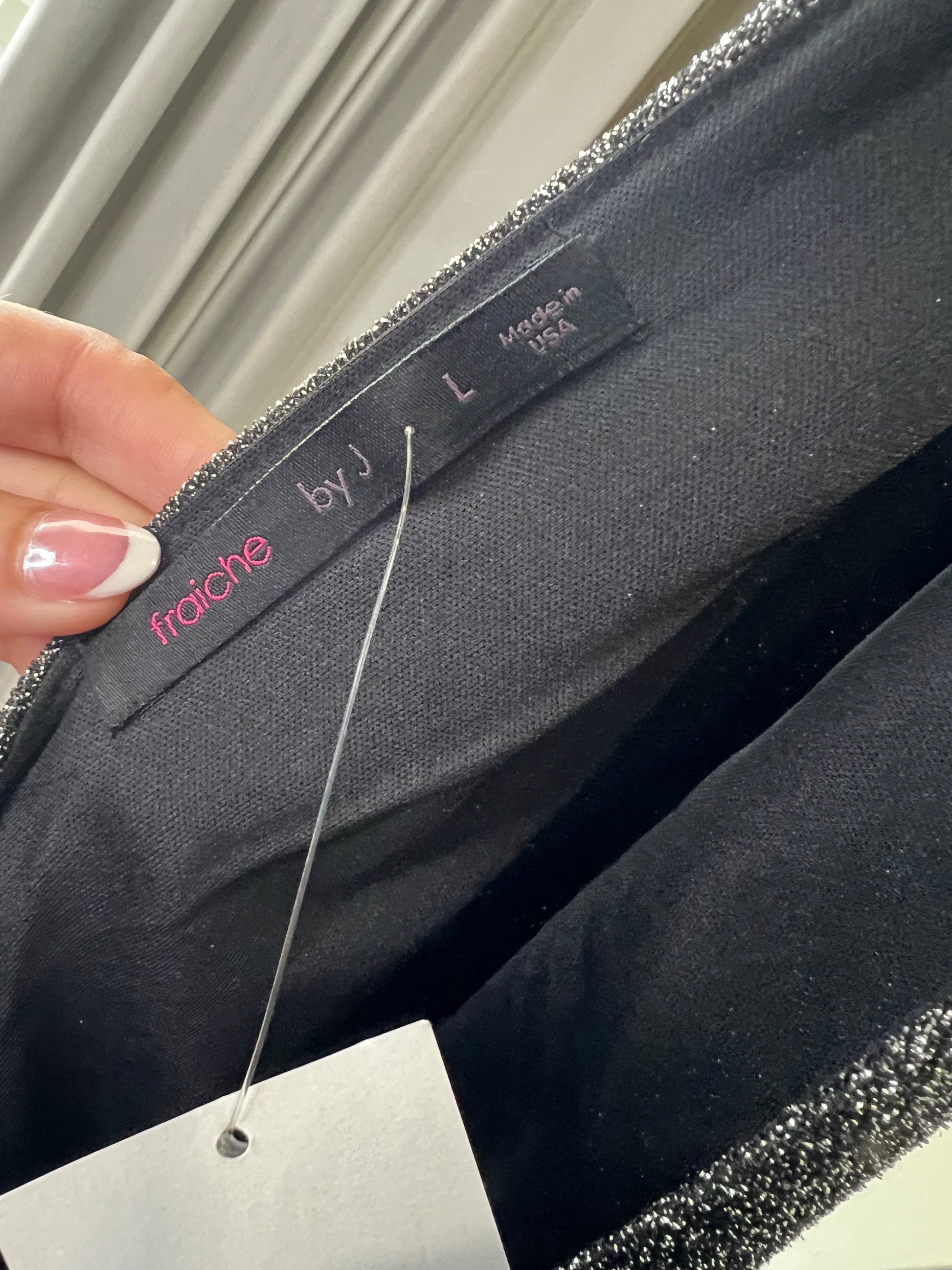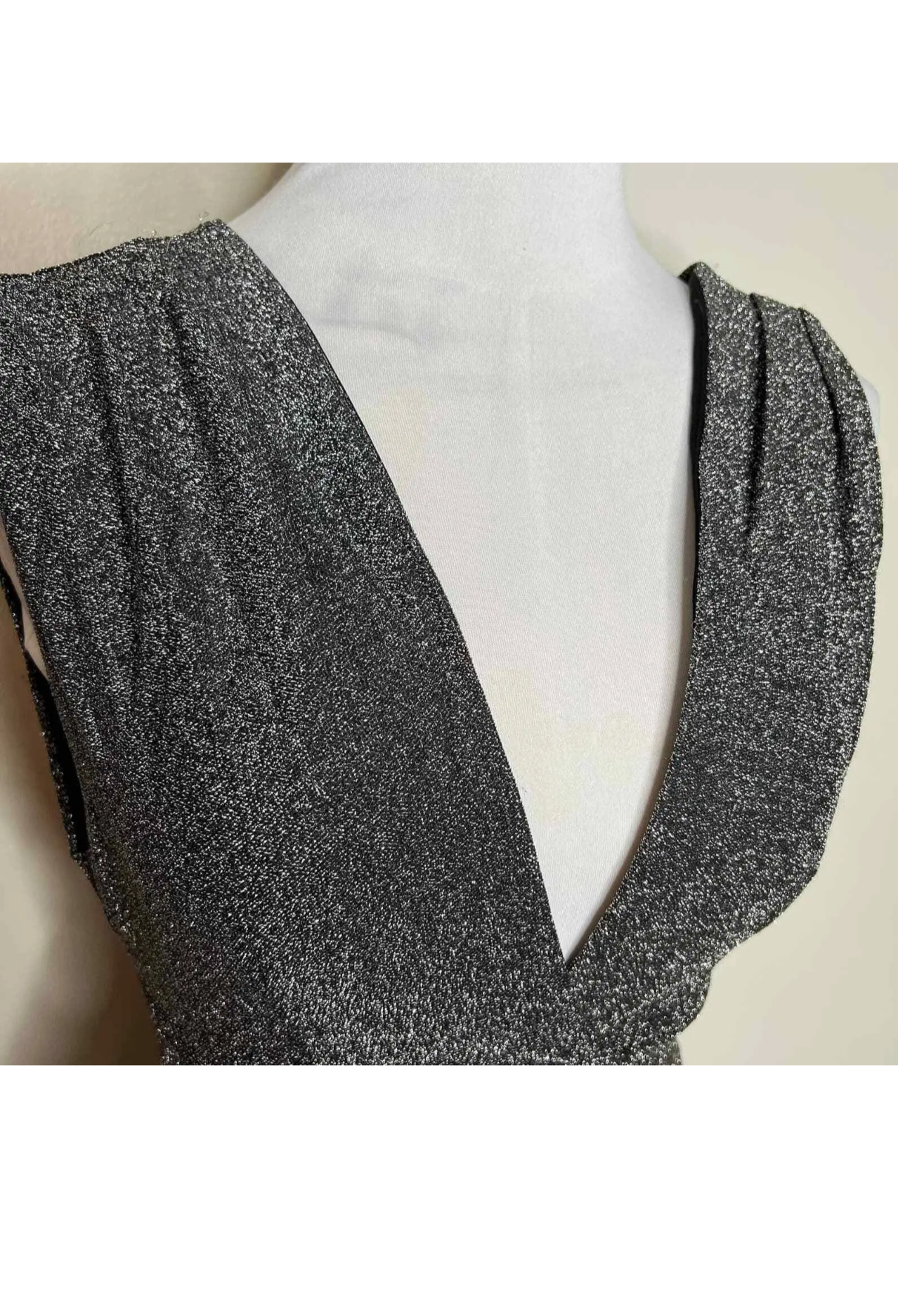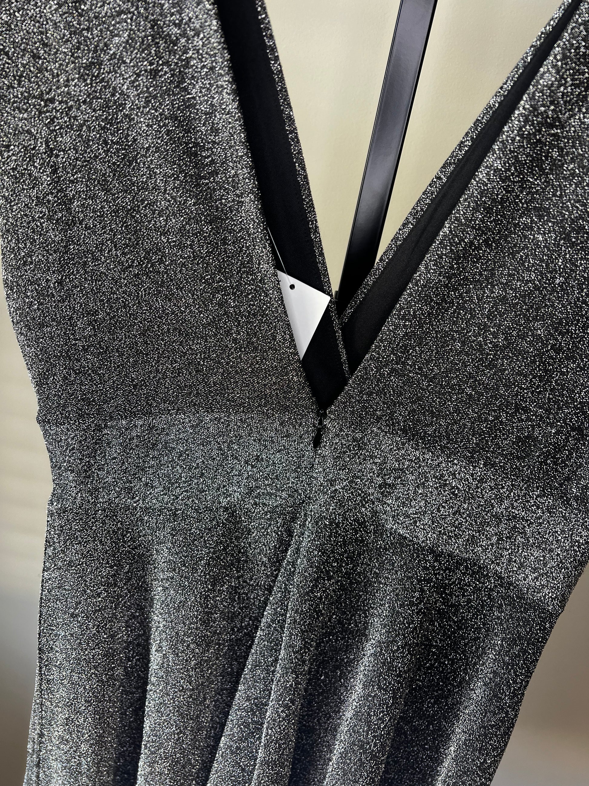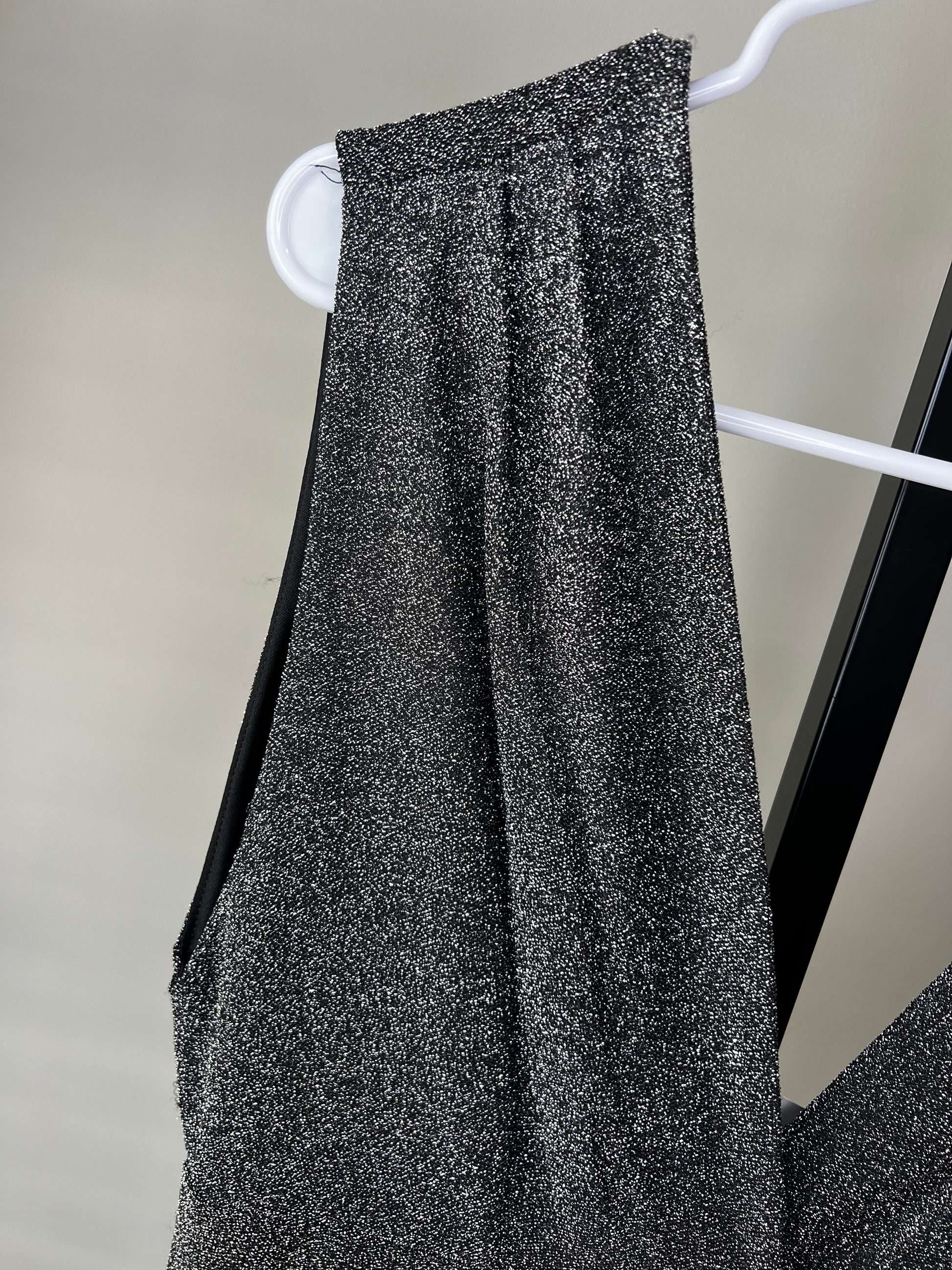 Beautiful mini dress with silver sparkles in the threading. Flattering V shape in the front and back.