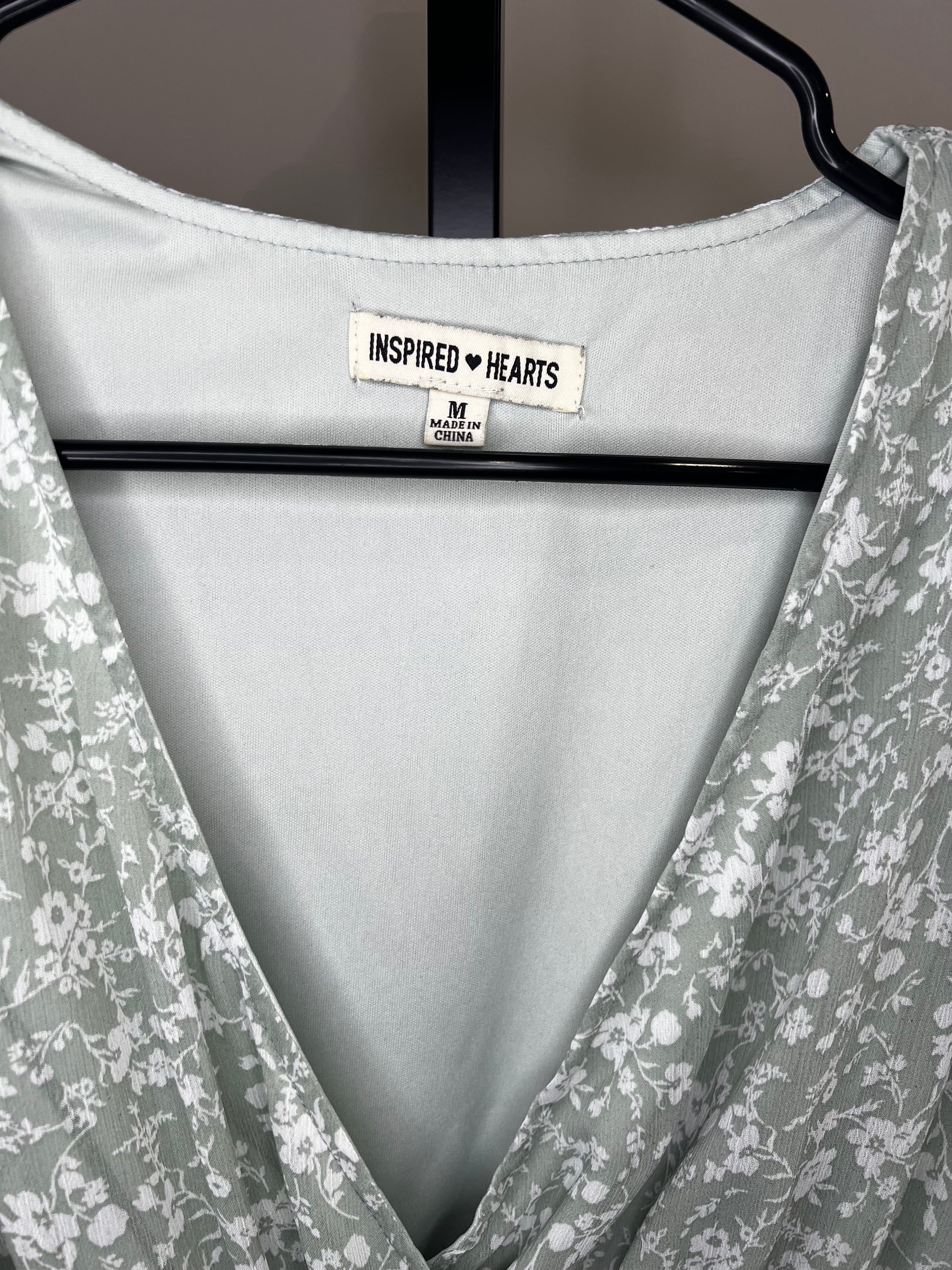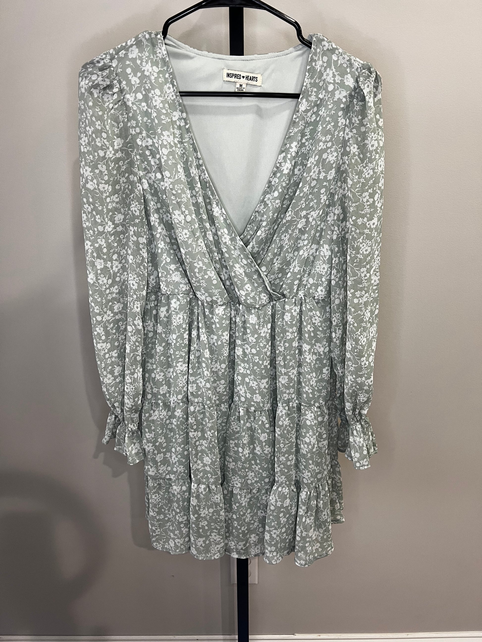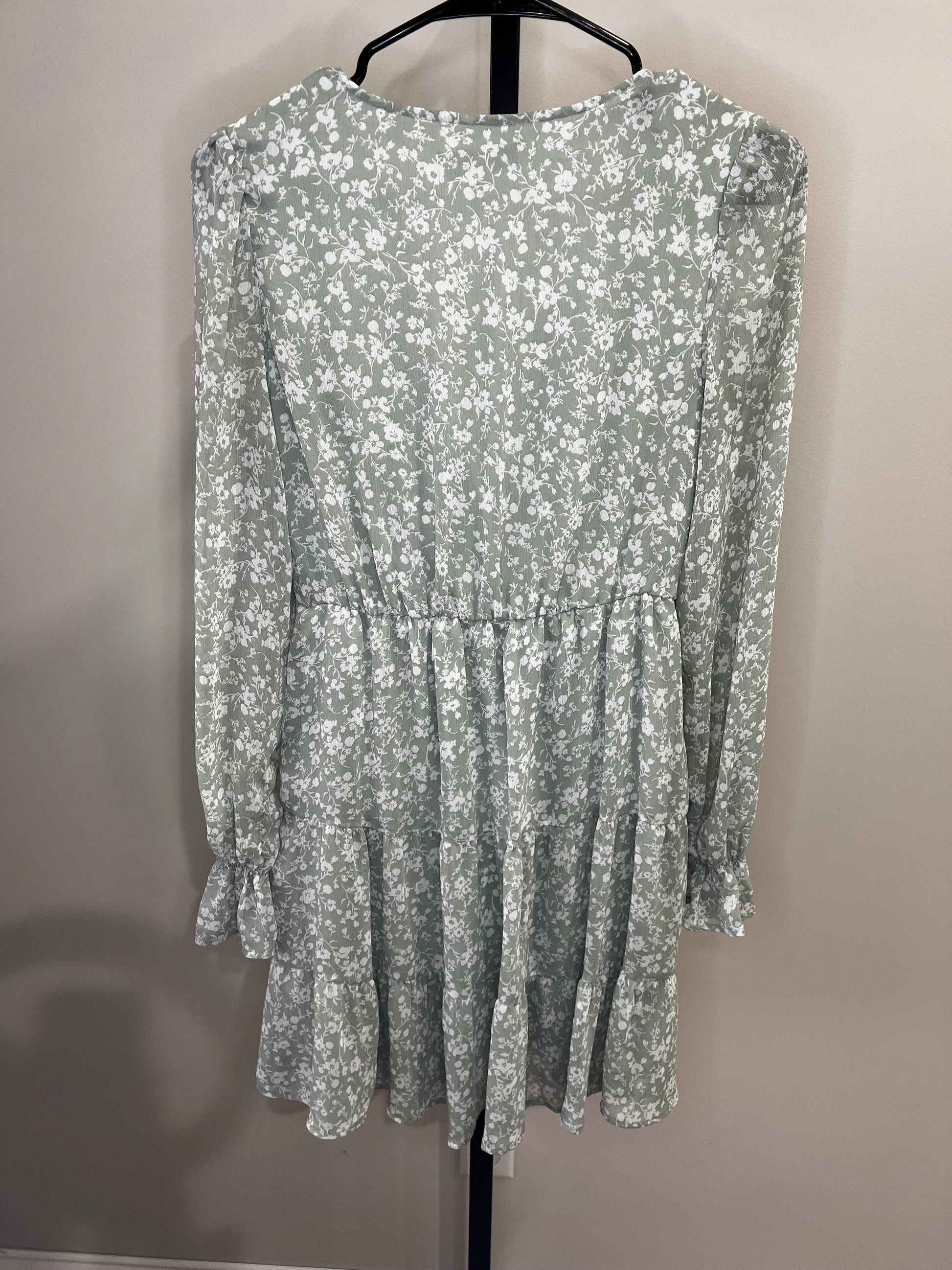 Long sleeve, V-neck, floral dress. This is light weight but double lined, so not see through.