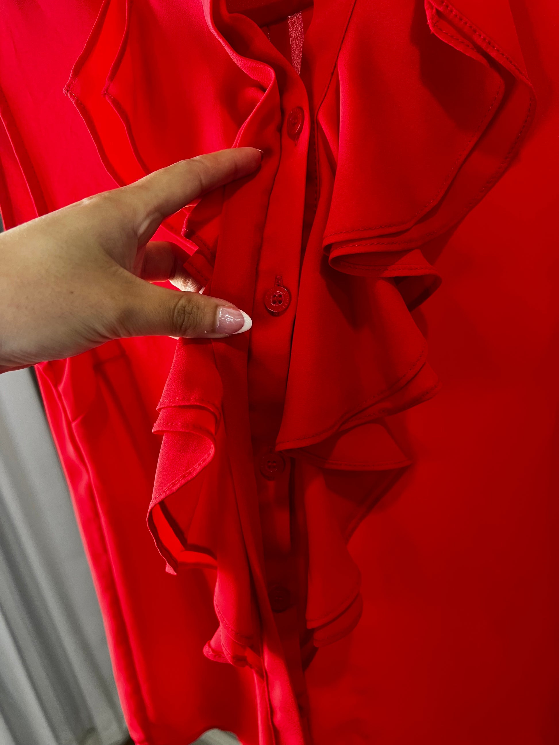 Karl Lagerfeld Red Ruffle Top- Sz L
