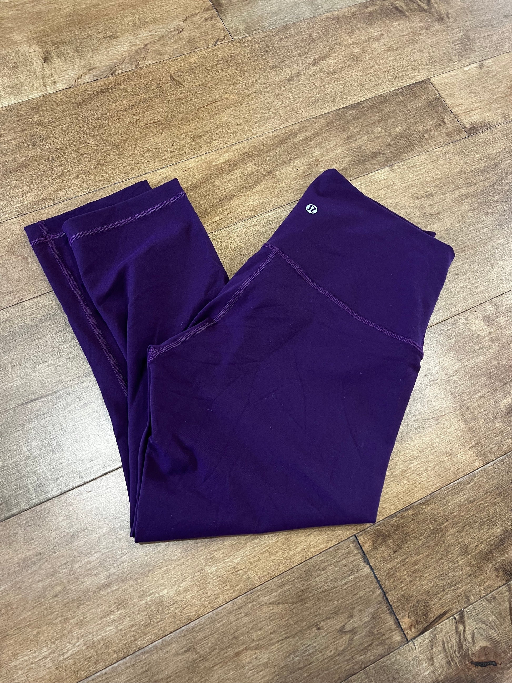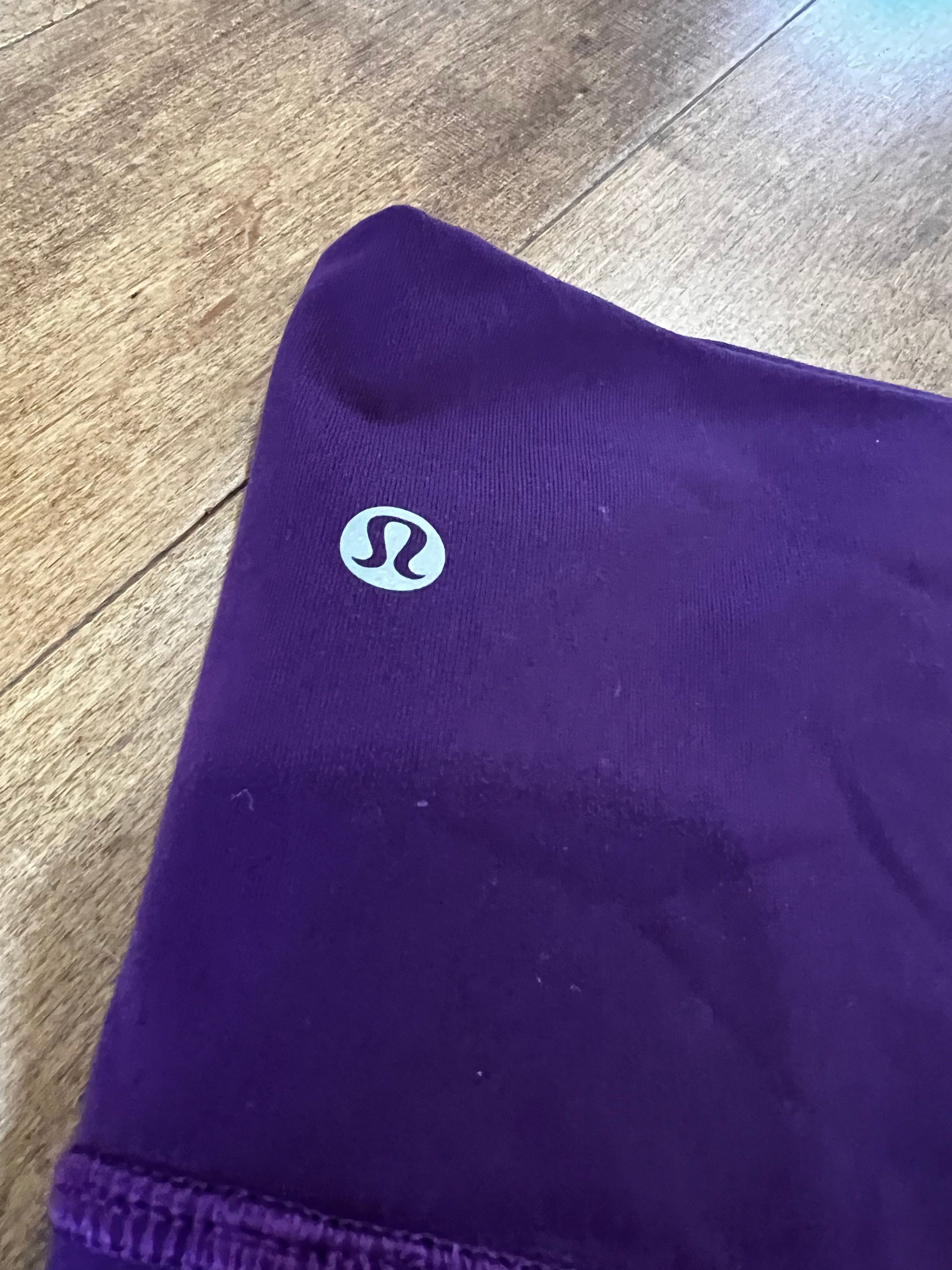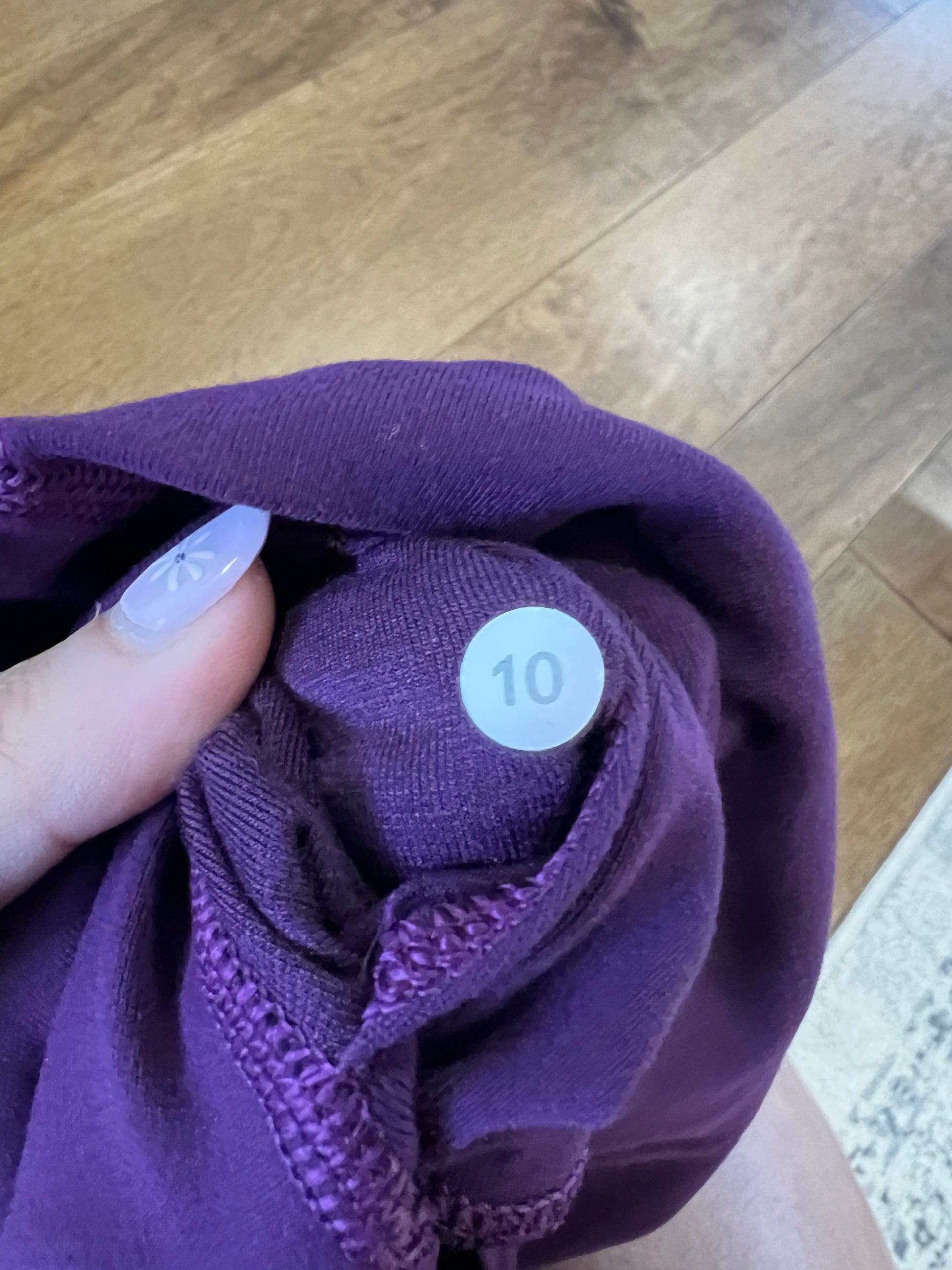 These are a beautiful royal purple. Not sure on the style but these are a cropped length. No major flaws to note.