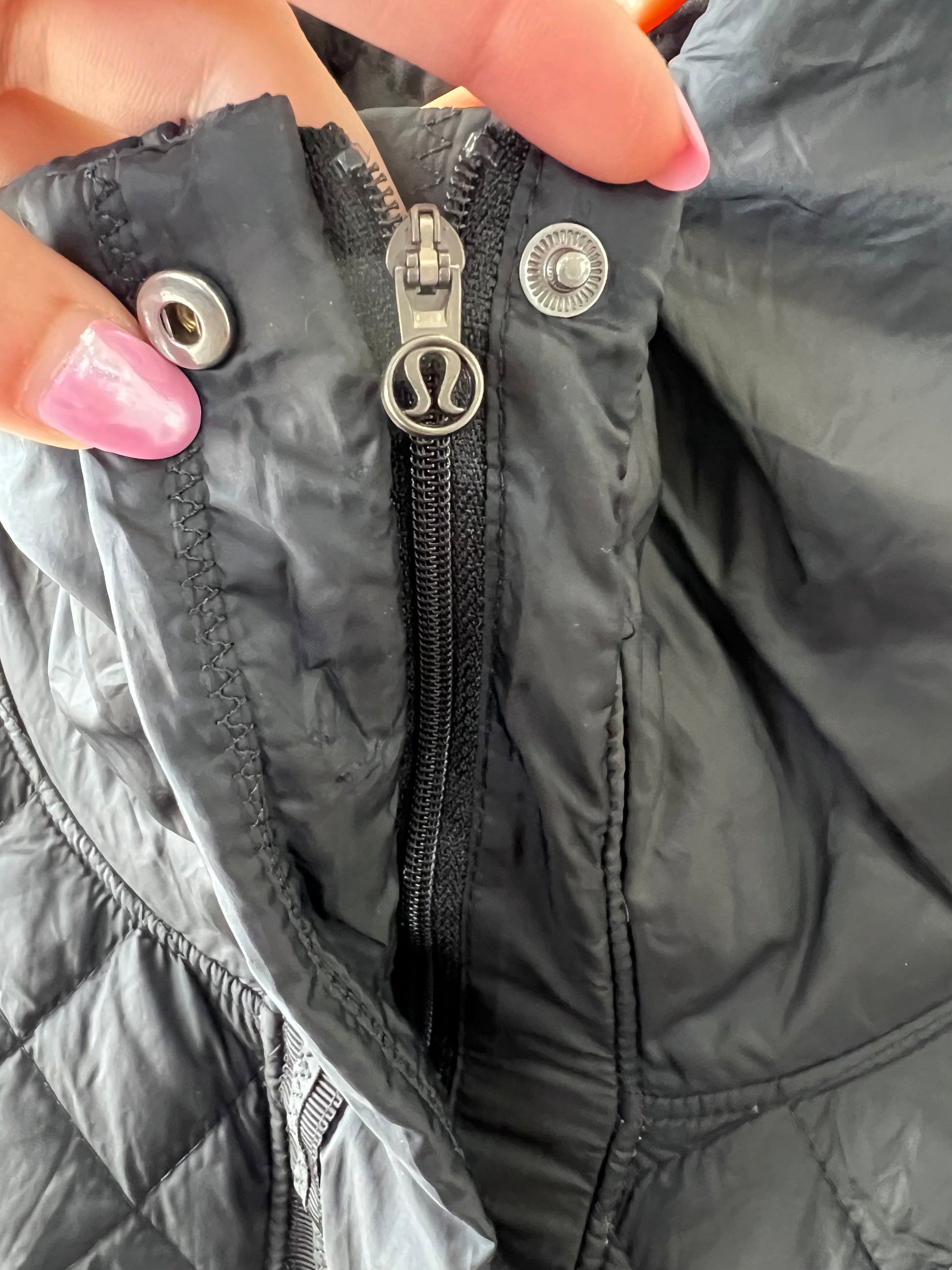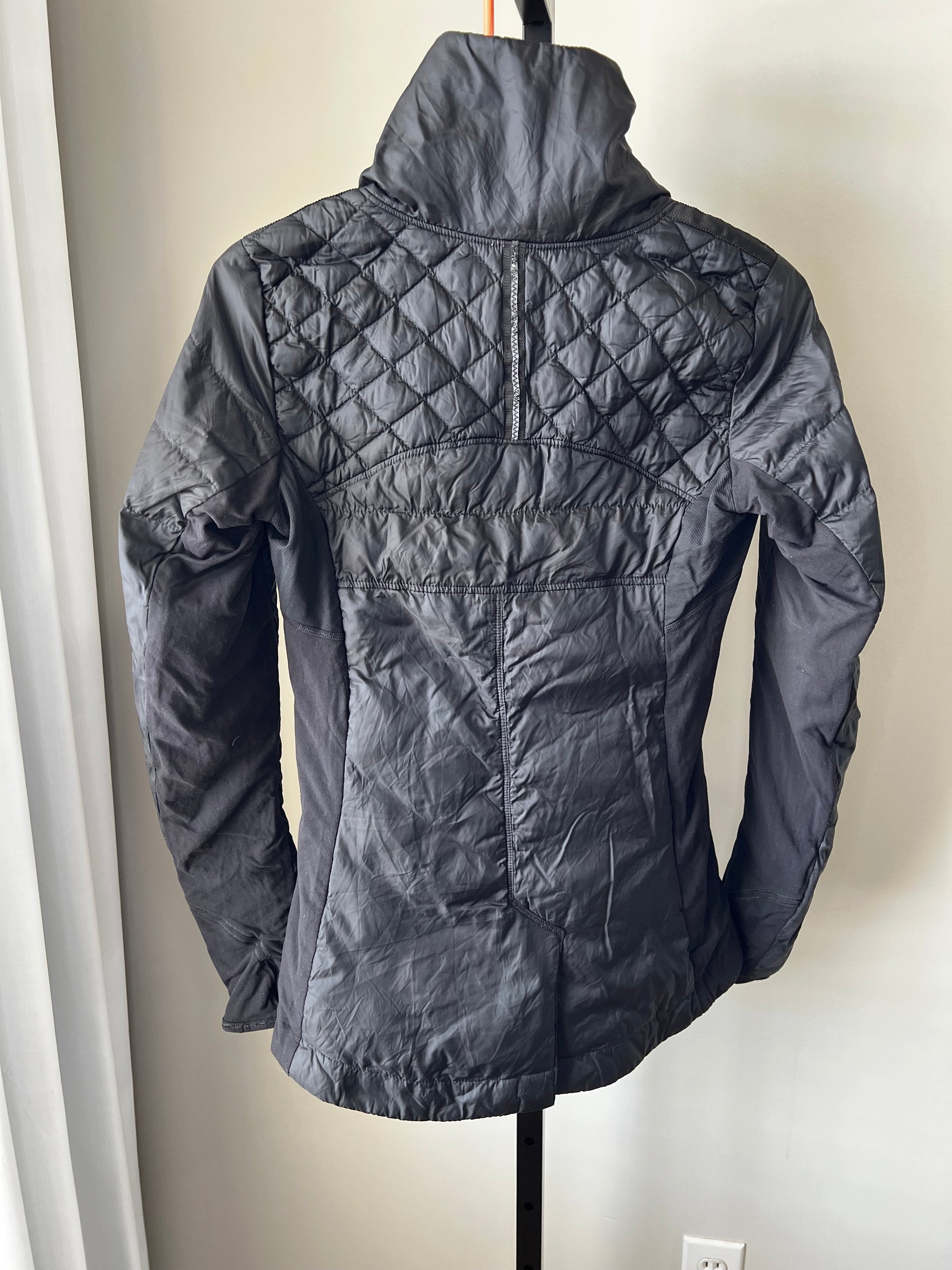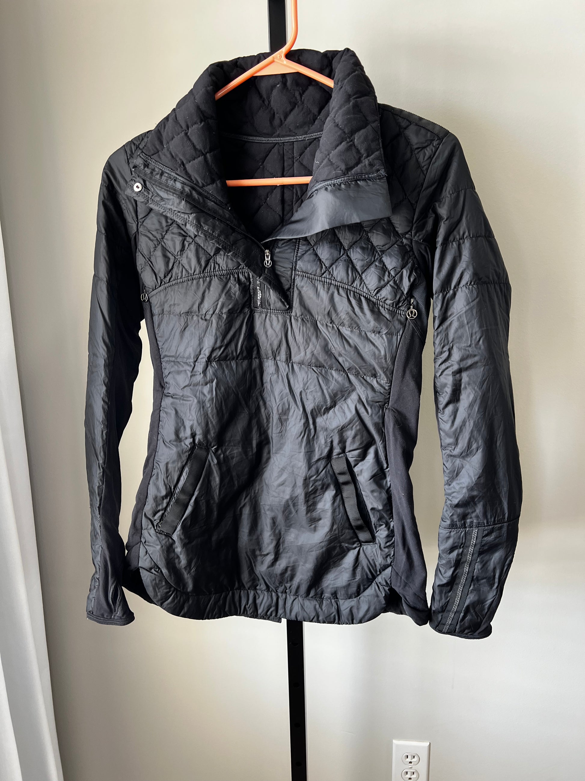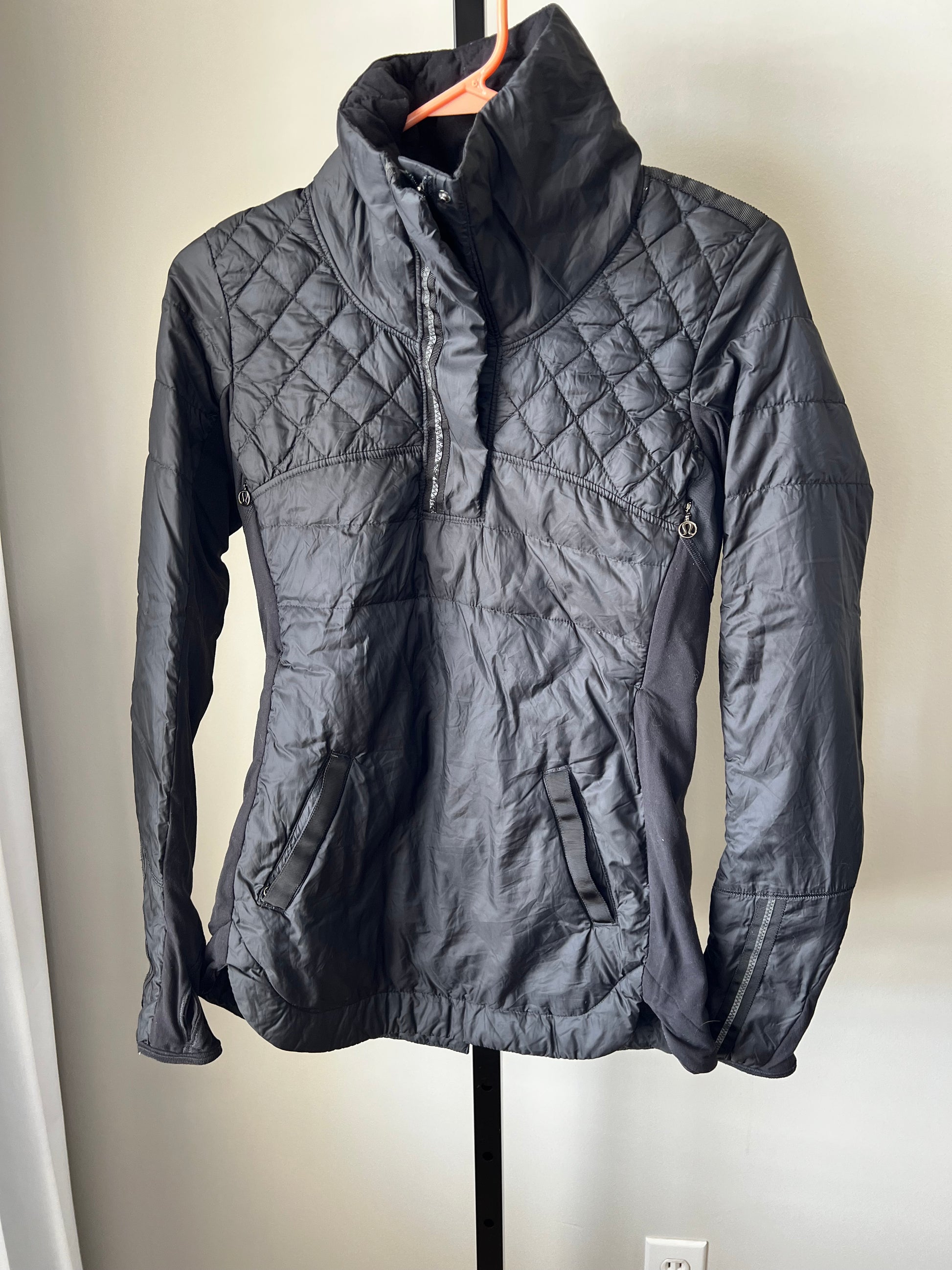 Color is black. Has buttons and a zipper, pockets on the sides. In great preowned condition. A little bit older style so I could not find style name or exact retail price. Retail price listed is cost of a very similar item.