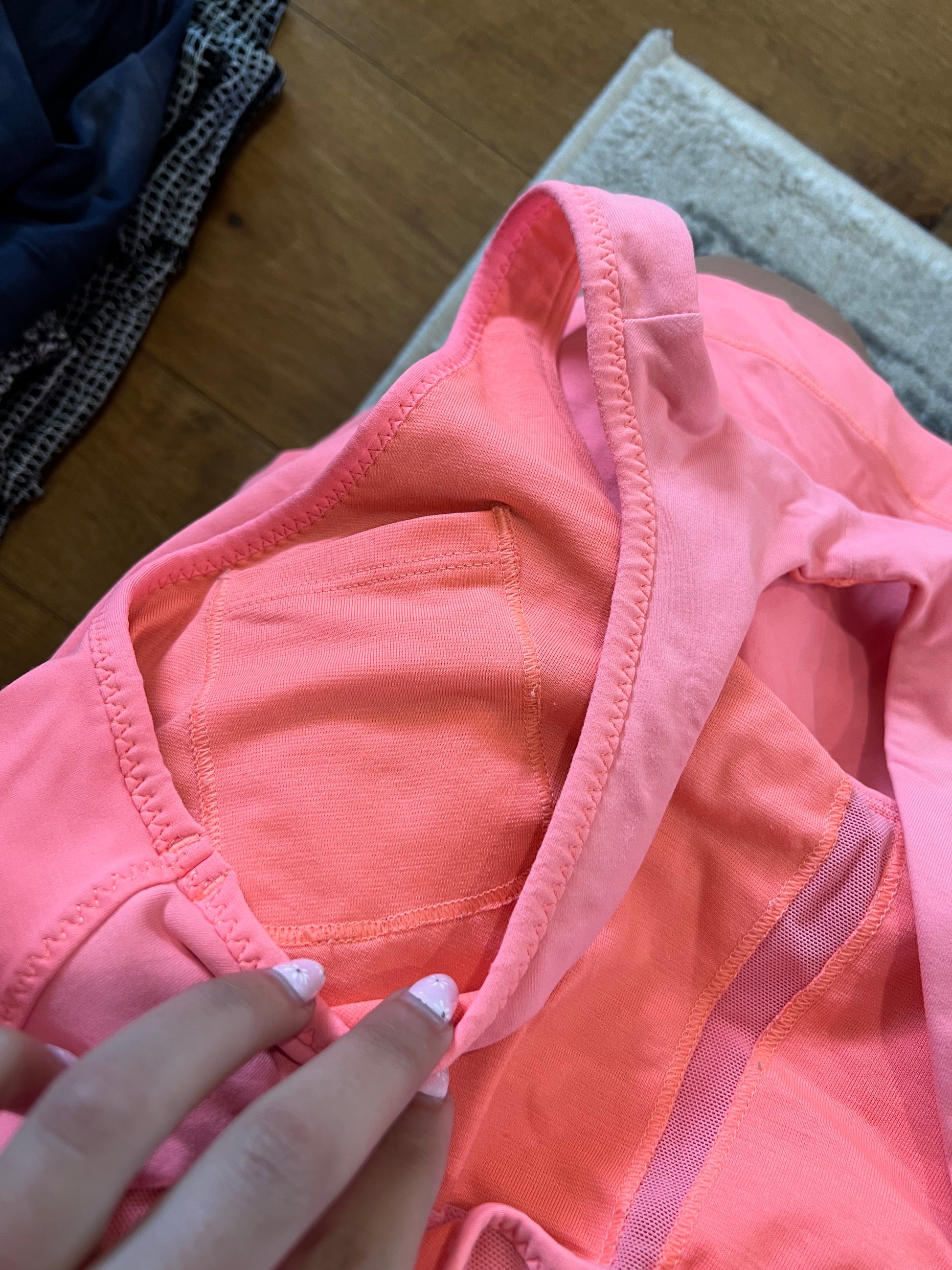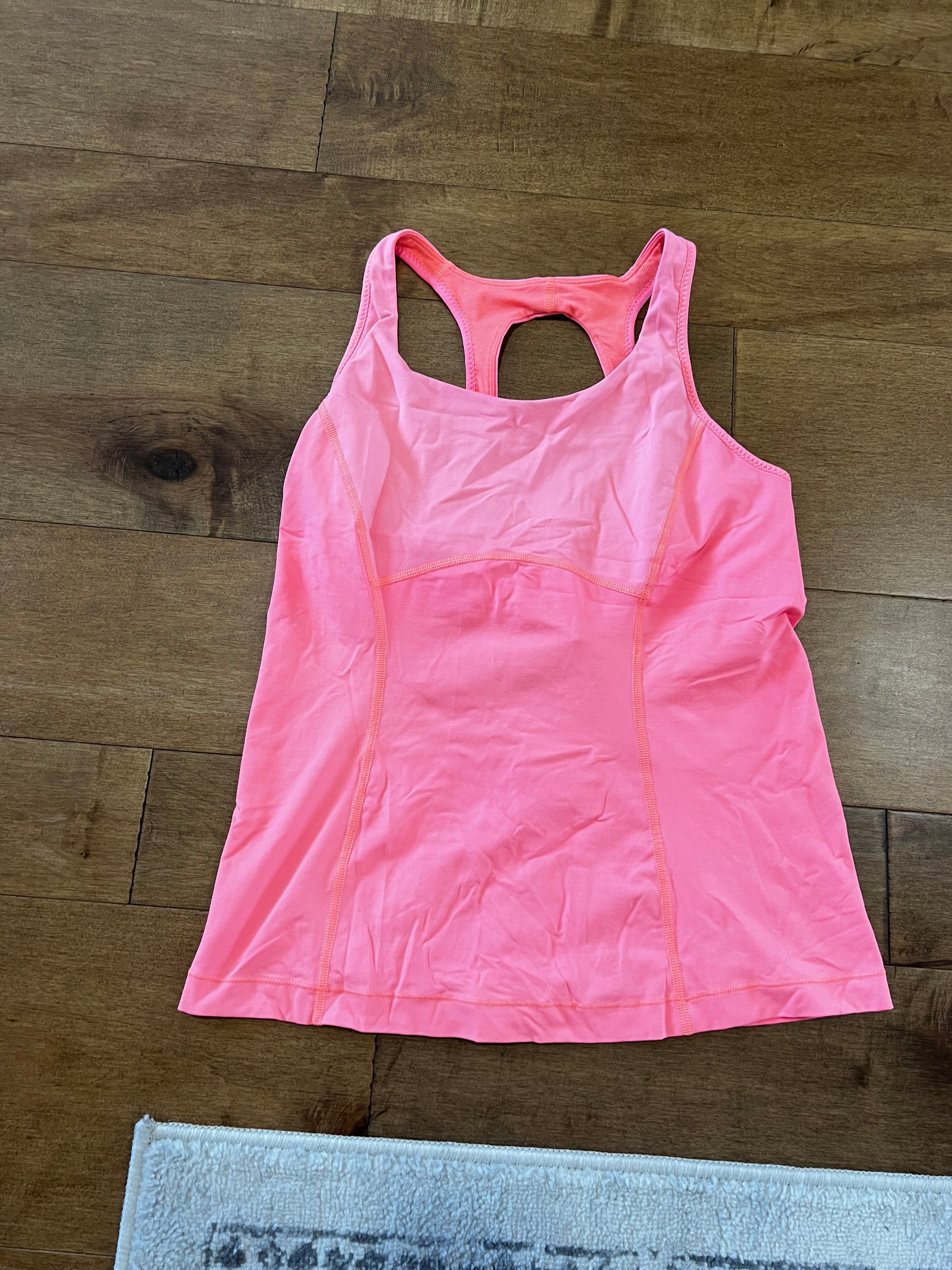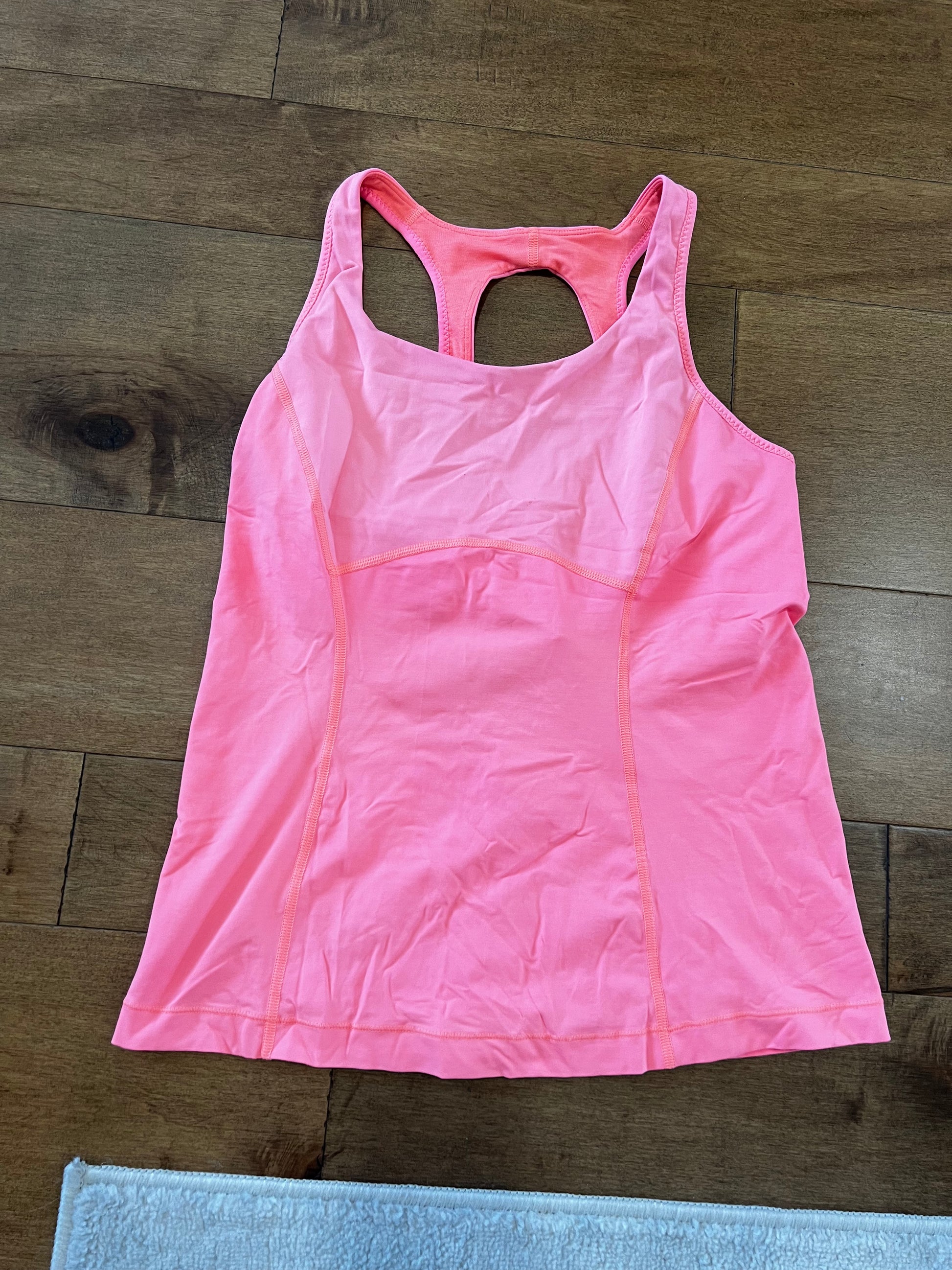 This is the prettiest bright pink. The details on the back make this top so stylish. Hidden pocket on the inside. No flaws! This is in brand new condition.