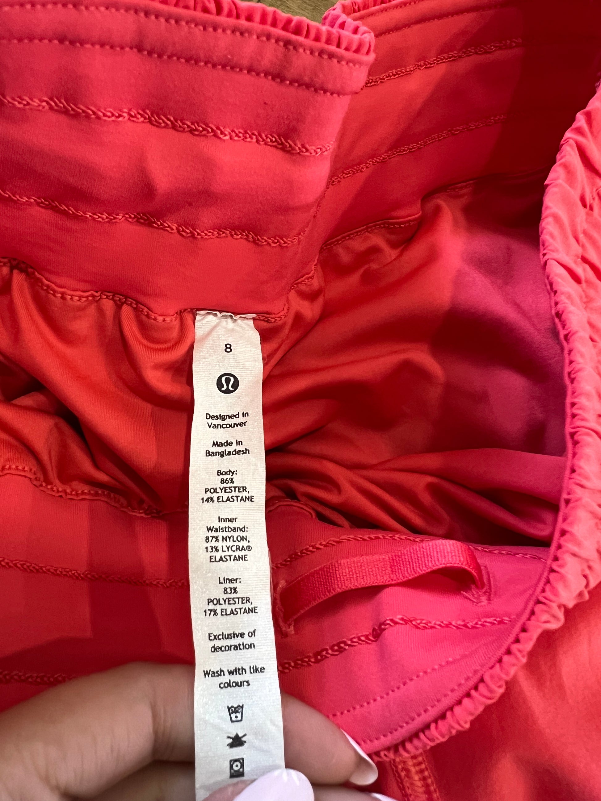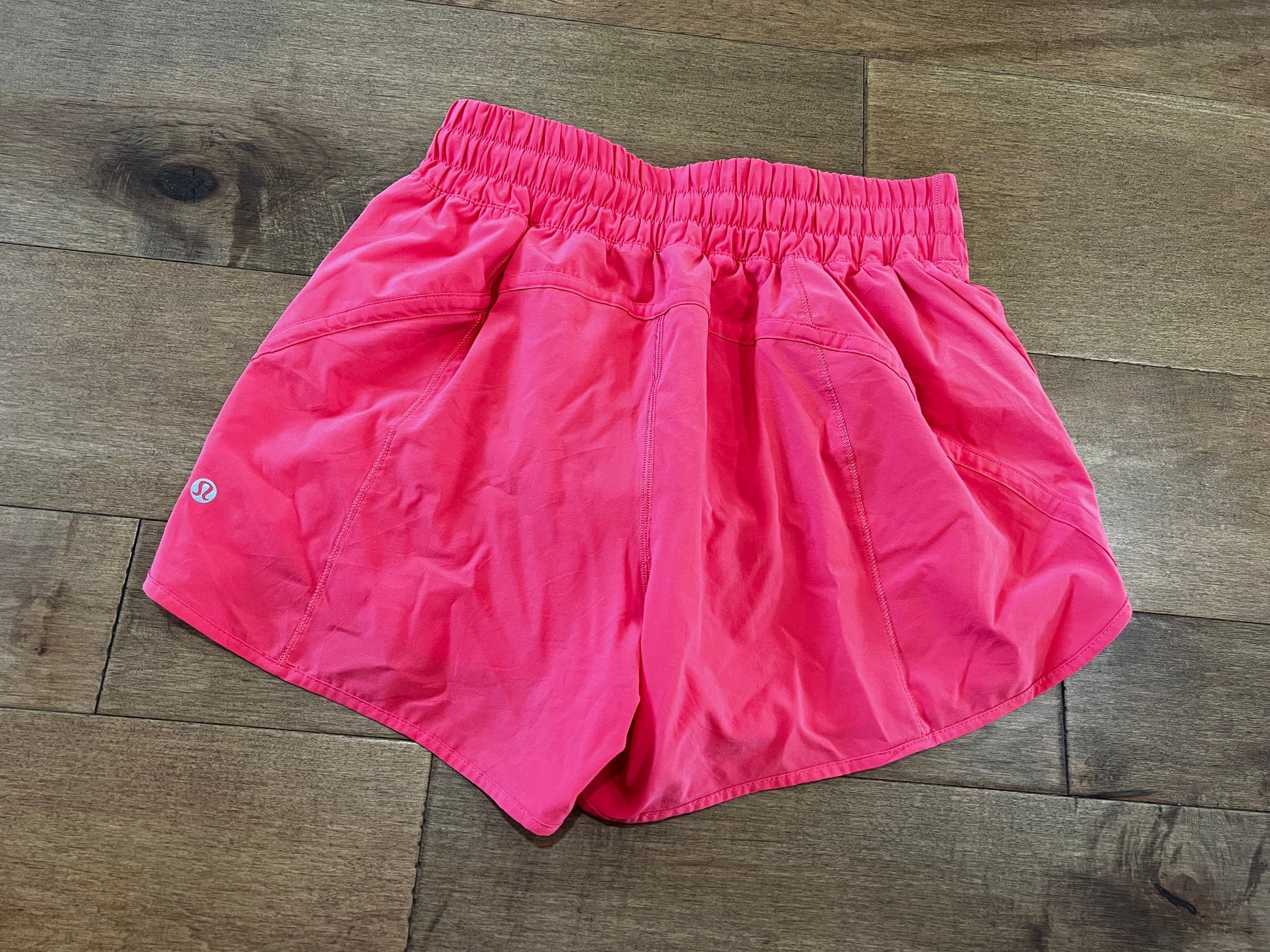 These are in brand new condition, rip tag still intact. The prettiest pink! I believe these are "Punch Pink". Liner is in perfect condition. I have never found this color before in lulu 2nd hand items.