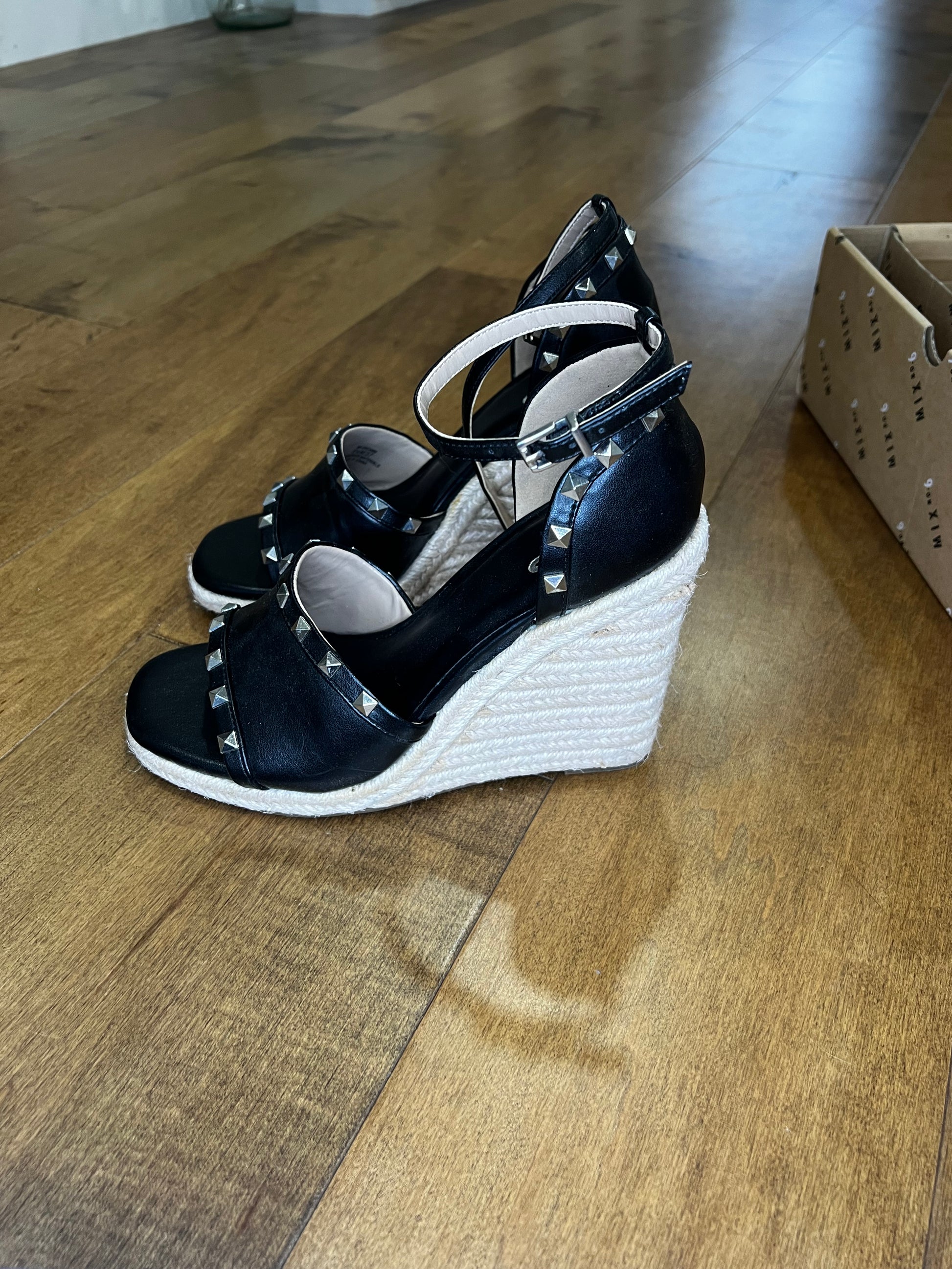 Mix No 6 Black Studded Wedges- Sz 6.5