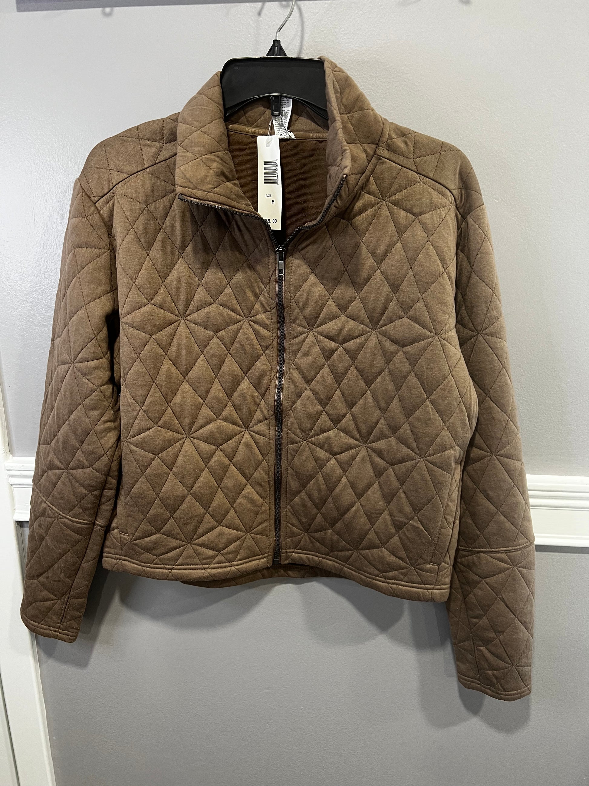 This is the prettiest mocha brown. Soft quilted material with a full zip front