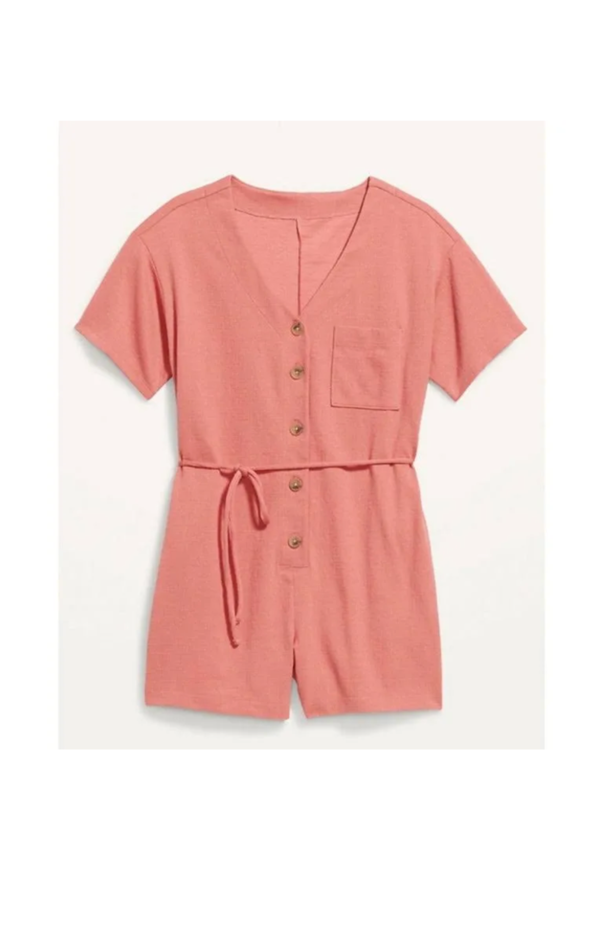 This is a beautiful salmon color. Perfect for Spring and Summer. Super cute alone or throw on a denim jacket for a chilly evening out!