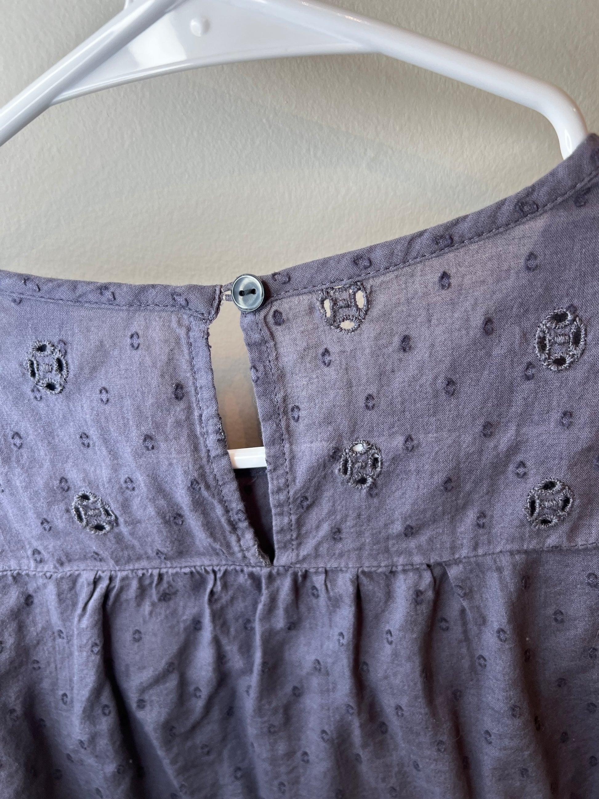 This has the most beautiful eyelet details all over. Beautiful muted navy blue color. No flaws!